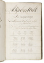Ca. 1830s. 4to (21.5 x 27 cm). With 2 folding tables, 17 lines to the page, written in red and black ink. Contemporary navy blue morocco, with the title lettered in gold on spine, marbled endpapers. [6], 237, 238-266, [10] pp. Full description