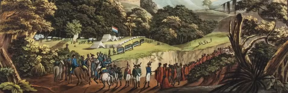 With: (2) [WATERCOLOUR]. Bijeenkomst van den Hoog. Ed. Gestr. Heer Generaal J. W. Janssens ... met het Opperste Hoofd der Kaffers.