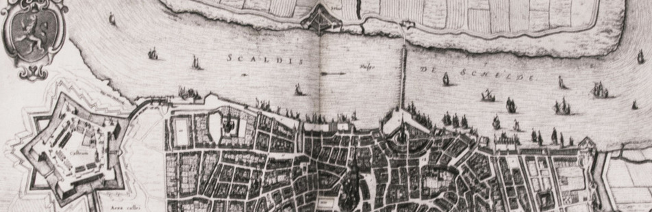 Antwerp, Daniel Vervliet and Arnout Coninx (shared printing), "1594" [=1588-1595]. Folio. With the general title page bearing Vervliets 1594 imprint, the only part-title (for the Inkomste bifolium) bearing sConincxs 1594 imprint, 7 small bust portraits, 2 portraits of the author, 10 small rectangular illustrations, 2 medium illustrations, and 8 full-page illustrations (on integral leaves), all woodcut, some (and the 2 title pages) in architectural and/or arabesque woodcut frames. The text is variously set in 1, 2 or 3 columns, sometimes even mixing them on one page, each page in a frame (made partly from rules) and with the running titles in Dutch and French at the foot of the page. An occasional bifolium includes a woodcut decorated initial. The text, in Dutch, French, Spanish, Italian, German, Latin, and Greek, is set in dozens of roman, italic, textura, civilité, fraktur and Greek printing types plus interlaced typographic capitals and arabesque typographic ornaments. Blind-tooled calf (ca. 1725/30?) by the so-called "Minnewit" bindery in Amsterdam. [102] ll. Full description