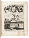 Leiden, ex officina Boutesteiniana, 1718-1719. 4 parts in 1 volume. 4to. With a general title page printed in red and black, 7 engravings (1 folding, 5 full-page, 1 in the text), divisional titles for each part with an engraved vignette, 18 decorated woodcut initials, 13 woodcut headpieces, and 12 woodcut tailpieces. Contemporary vellum with the manuscript title on the spine, red and blue sprinkled edges. [24], 325, [47]; [4], 3-44, [4]; 109, [2], [1 blank]; 25, [1], [2 blank] pp. Full description