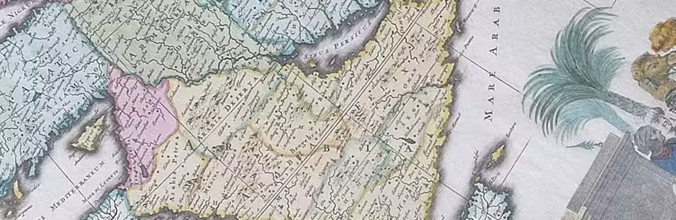 The Hague and Leiden, widow of Engelbrecht Boucquet and sons, Jan van der Deyster, and Boudewijn and Pieter van der Aa, 1727. 8 volumes. Folio. With a general title-page printed in red and black, 8 engraved allegorical frontispieces, 4 engraved dedications, 116 engraved maps, 7 full-page engraved plates, and 502 engravings in the text. Further with 8 title-pages with a vignette, and another 128 separate divisional title-pages with a vignette. Contemporary elaborately gold-tooled marbled calf, with a red morocco title-label lettered in gold on each of the spines. Full description