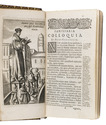 Leiden, Joannes Maire, 1652. 14 works in 2 volumes. 12mo. Ad 1 with an engraved title page by C. van Dalen showing Erasmus standing in a church with a book in his left hand pointing to three other men. All title pages contain Maire's woodcut device (see Breugelmans, nr. 13), and a woodcut portrait of Erasmus in a roundel on leaf *8r in ad 1 and his device in a roundel in the text on leaf 2*5v in ad 1. Further with several woodcut decorated initials throughout.