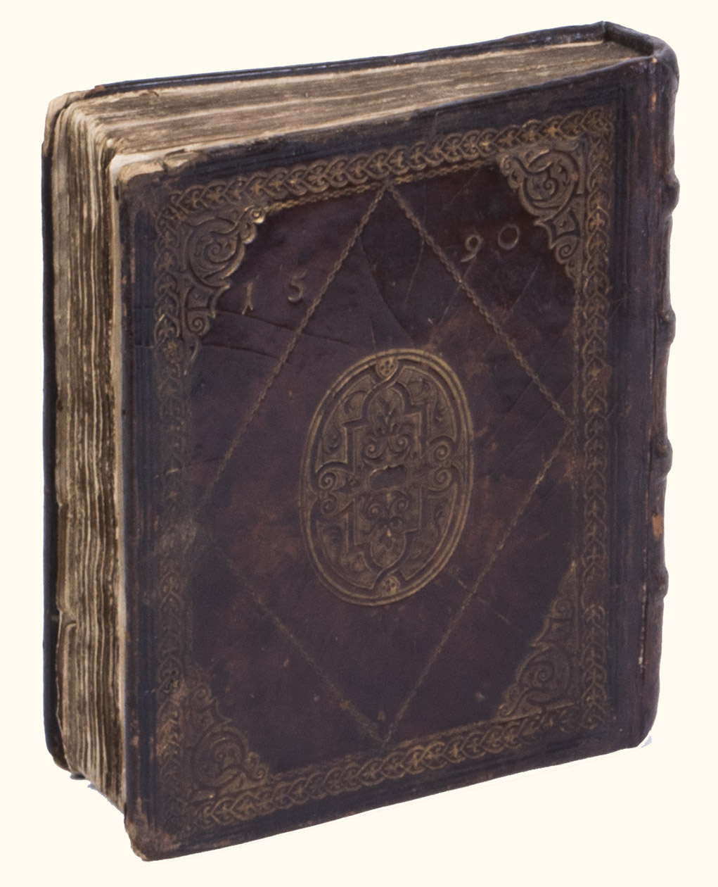 Beautifully illustrated hand-coloured and highlighted in gold album amicorum in an elaborately gold- and blind-tooled binding dated 1590