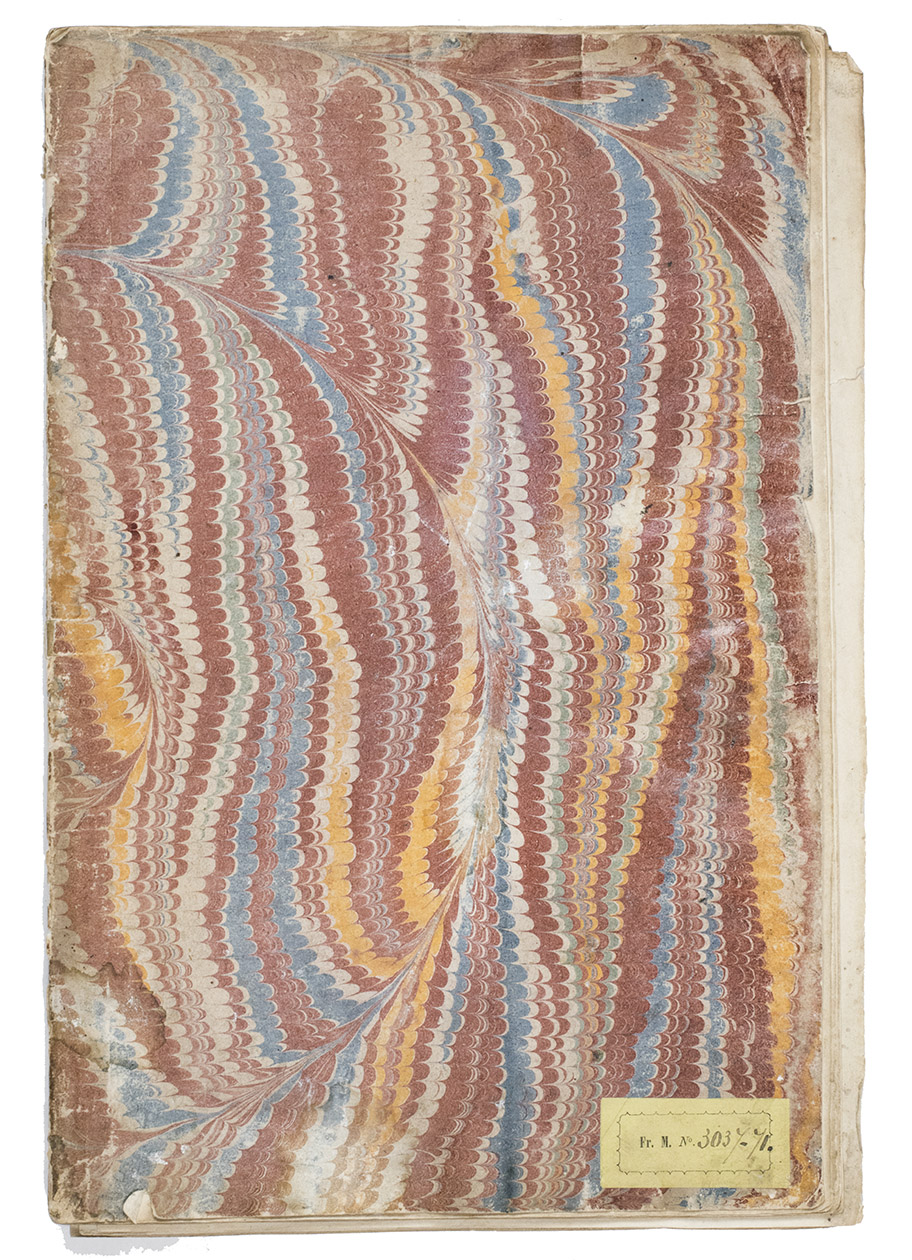 With 6 prints loosely inserted, 3 of them with a slightly tattered fore-edge, 1 also with a marginal tear along an old fold repaired with tape, and 1 bound print slightly browned, but still generally in very good condition. The spine of the marbled wrapper is mostly lost and the sides rubbed, with a few small and minor tears and stains, but the binding structure remains sound. One of the best and most extensive copies of an extremely rare and important popular satirical print series from the War of the Spanish Succession. Atlas van Stolk 3182; Brunet I, pp. 194-195; Cohen, col. 28; KVK & WorldCat (3 copies); Muller, Historieplaten 3038-3071.