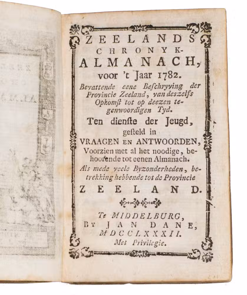 Zeelands chronyk-almanach, voor 't jaar 1782. Bevattende eene beschryving der provincie Zeeland ... ten dienste der jeugd, gesteld in vragen en antwoorden.