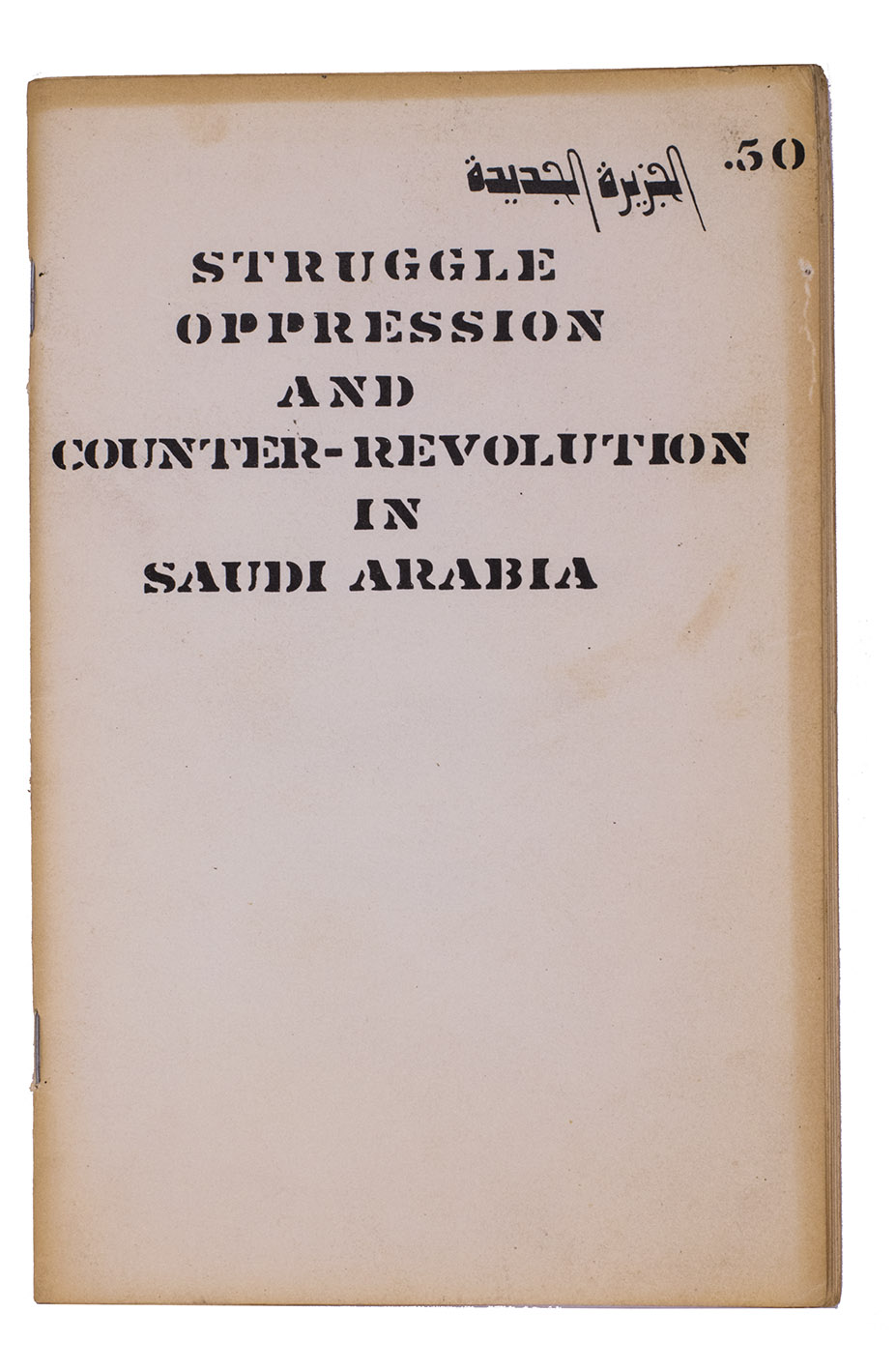 Revolutionary pamphlet published by the Arab Support Committee in Berkeley, containing translations of three articles originally published in 1972 in the journal of the People's Democratic Party of Saudi Arabia. The three articles concern statements regarding the economy and politics of Saudi Arabia, particularly in its relation to the state of South Yemen.