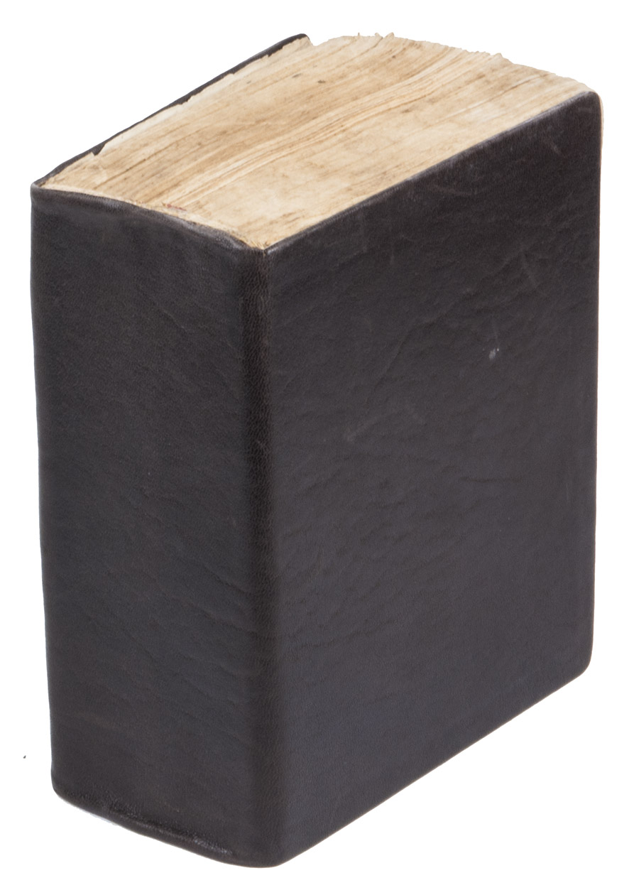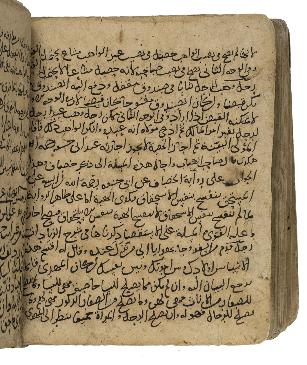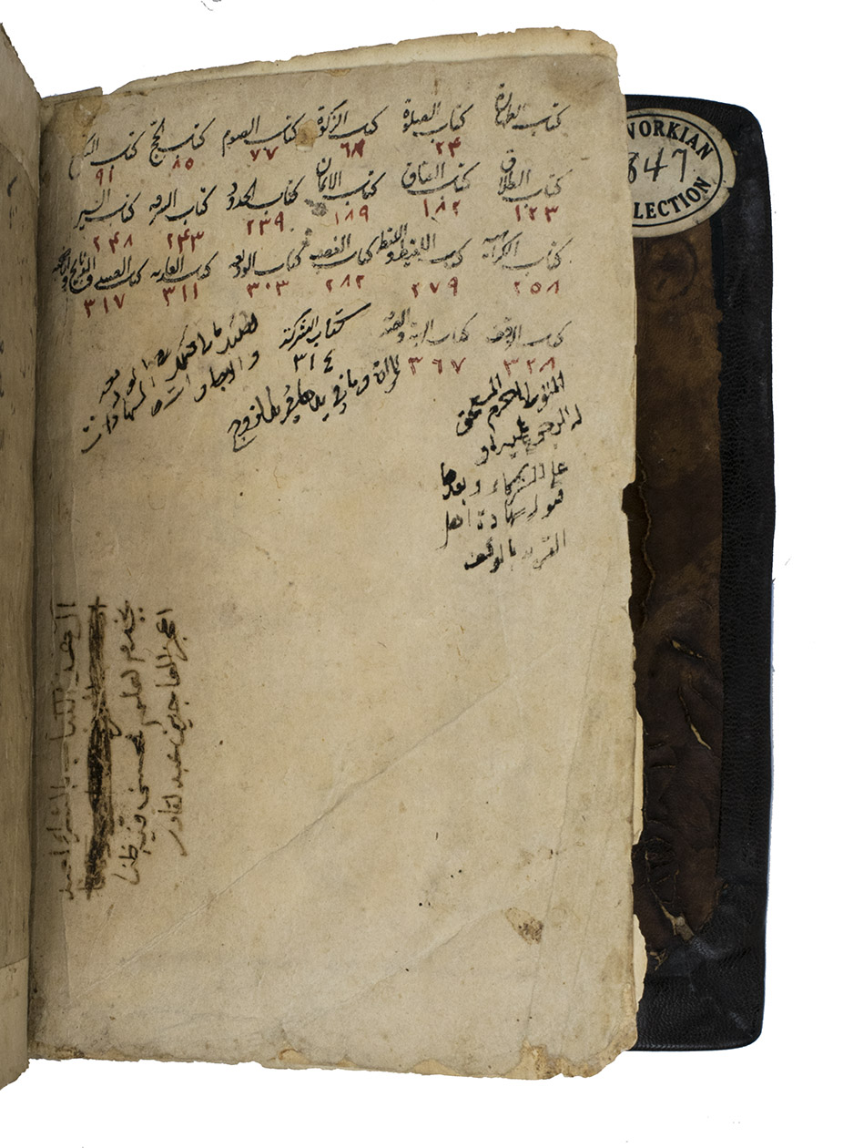 [Levant, ca. 1290]. Small 4to in 6s (17 x 14) cm. Arabic manuscript, 15 to 17 lines to the page, written in clear cursive ta'liq script on brown Middle Eastern paper. With occasional red rubrication. Contemporary (?) blind-tooled calf, mostly covered with later calf leaving only the contemporary back cover exposed. 19th century European paper endpapers. With a loose leaf of 18th century European paper with Arabic manuscript writing on one side. 374 ll.