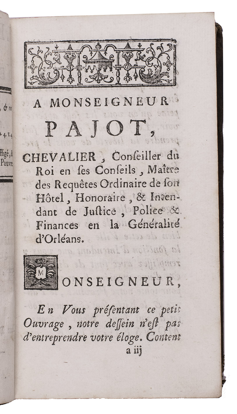 Paris, Debure l'aîné, 1758. 12mo. Contemporary cat's paw calf, gold-tooled spine. LVI, "473" [=471] pp.