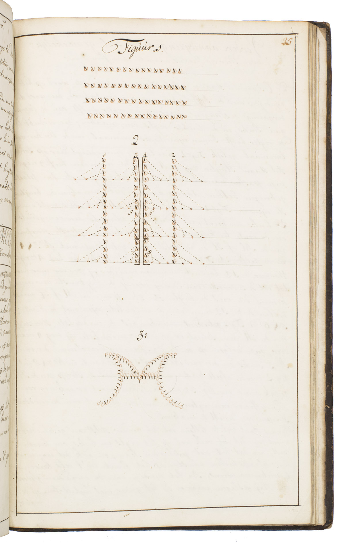 [The Netherlands], 1738. Folio. With 25 ink drawings depicting tactical formation exercises for infantry. Contemporary gold- and blind-tooled mottled calf, a red morocco title-label lettered in gold, gold-tooled board edges, marbled edges. [1], [1 blank], 49, [9 blank] pp.