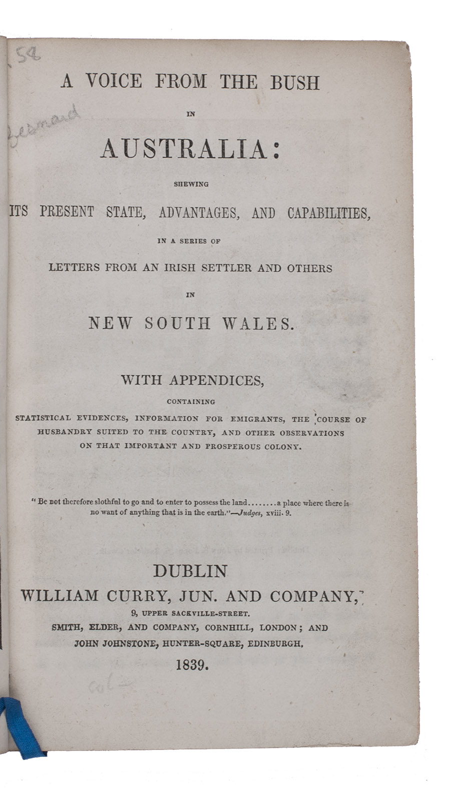 A voice from the bush in Australia: shewing its present state, advantages, and capabilities, in a series of letters from an Irish settler and others in New South Wales. With appendices ...