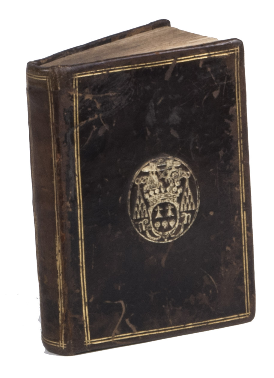 The present copy is bound in dark brown leather with the coat of arms of Pierre-Daniel Huet stamped in gold on the front and back covers. Huet was the Bishop of Soissons, and later Avranches. He was the cofounder of the Académie de Physique in Caen and in 1674 he became a member of the Académie française. He was one of the most learned men of his age; he studied Greek and Hebrew and he claimed to have read the Hebrew text of the Bible 24 times.