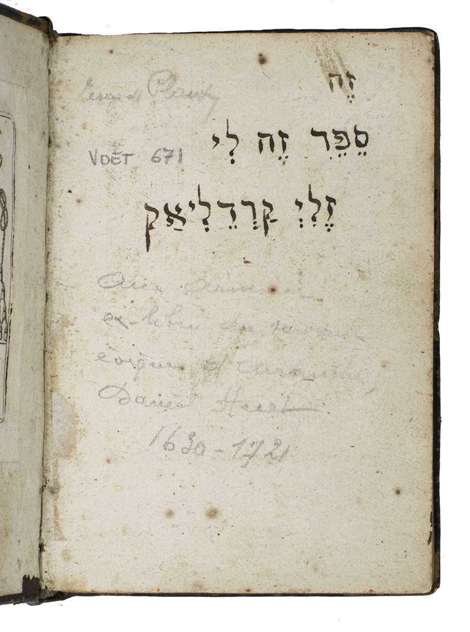 Covers show signs of wear, spine has been expertly restored. With an ex libris-label of Pierre-Daniel Huet on the front pastedown: "Ex libris bibliothecae quam Illustrissimus Ecclesiae Princeps. D Petrus Daniel Huetius [...] 1692.", an inscription in brown ink in Hebrew and several inscriptions in pencil, all on the first fly leaf. With crossed out inscriptions (except for "164" in the bottom left corner) on the verso of the third fly leaf and at the head of the title-page, with some annotations in dark brown ink (in Greek) throughout, very slight foxing throughout, a small water stain in the top margin of the second half of the book, without affecting the text. On pp. 29-30 a small corrosion spot, on p. 30 a marginal stain, and a small hole in the text in p. 87, all very slightly affecting the text. This is a well preserved copy of a bilingual book of psalms, with an interesting provenance. BMC STC Dutch, p. 26; Voet 671; Olivier 1684. cf. NBG XXV, col. 381-385; Voet 672; Adams B-1390 ["32mo"].