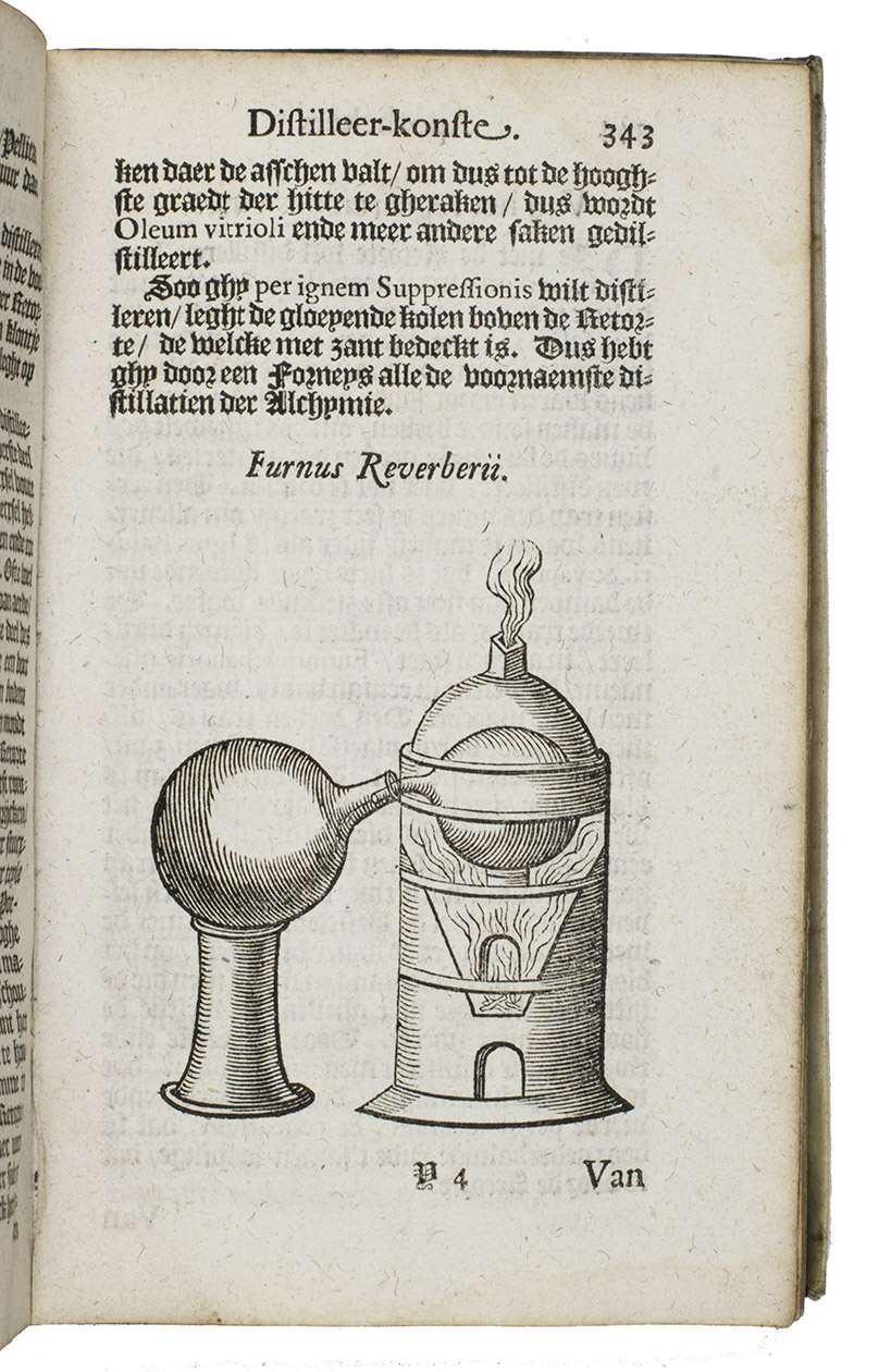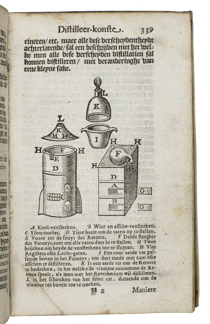 Rare first known edition of a successful apothecarys manual for students, written in Dutch, mirroring the general knowledge of pharmacology in the middle of the 17th century. The author of this intriguing book long remained unidentified until his initials "I.B.S.I" (fol.*3v of the 1662 "4th" edition, in the Latin note following the Dutch approbation, both signed from Ghent) identified him as Jan Bisschop S.J. (1590-1664) who worked in Bruges as a pharmacist before he moved to Ghent in 1613 to join the Jesuit order. He trained numerous apprentice pharmacists and later served as official pharmacist at the Vienna court of the Holy Roman Emperor Ferdinand II. His book owed its success above all to its extremely practical approach, including its vast collection of medicinal recipes, many involving distillation.