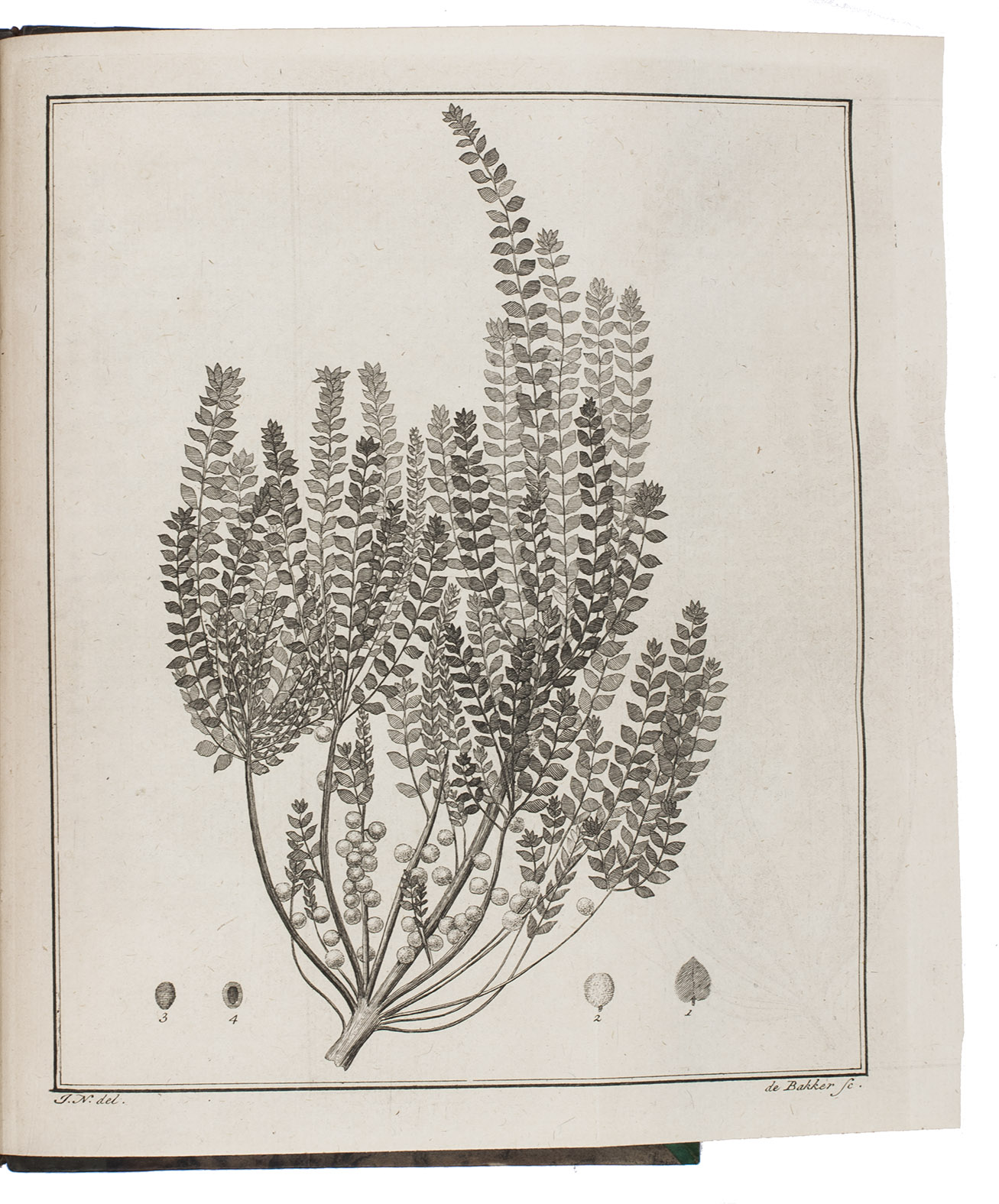 Amsterdam, J.H. Schneider, 1778. 2 parts in 1 volume. 8vo. Title-page with an engraved vignette by Christian Friedrich Fritzsch and 16 folding engraved plates. Olive half calf (ca. 1840), gold-tooled spine. [6], 130, [2], 100 pp.