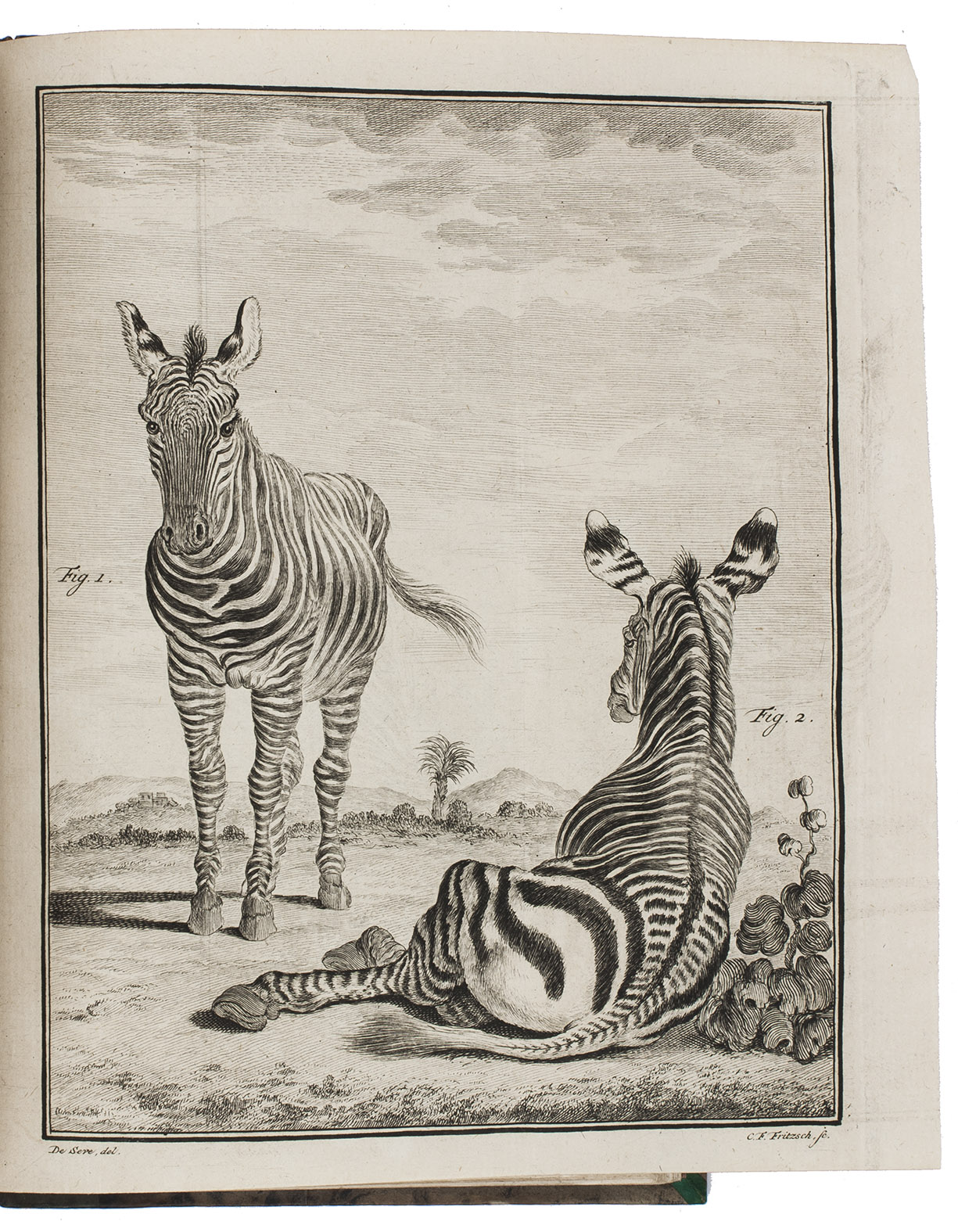 Two 19th-century bookplates on pastedown (one heraldic) with the name and other identifying features obliterated. Cracks in the hinges, but otherwise in very good condition. Tiele, Bibl. 118; Mendelssohn I, pp. 185-186; STCN (3 copies); cf. Rookmaker, The zoological exploration of Southern Africa, pp. 36-37; not in Nissen.