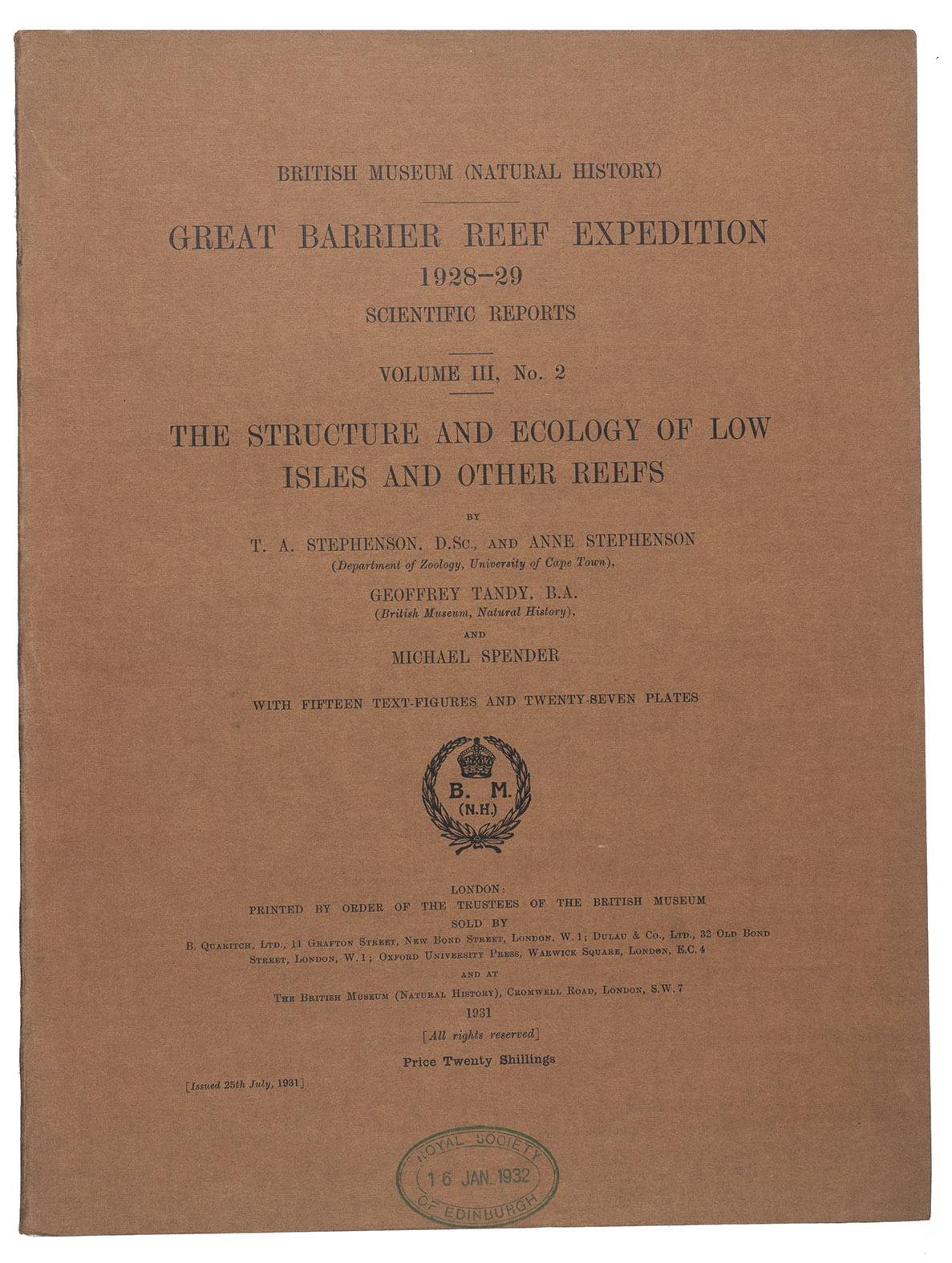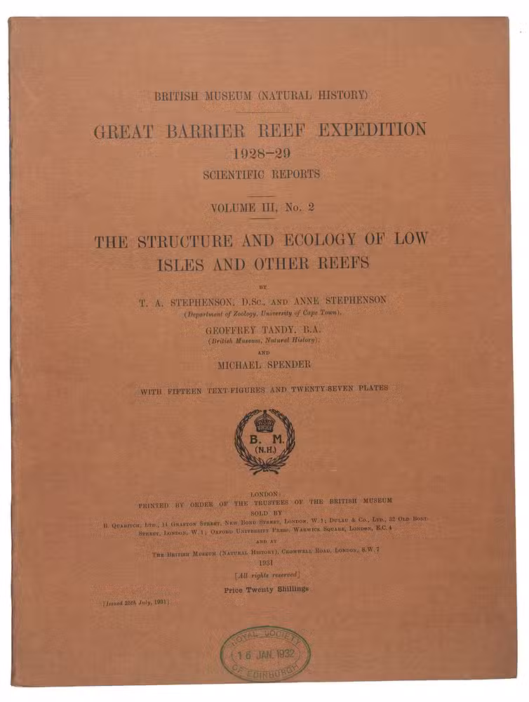 Great Barrier Reef Expedition 1928-29. Scientific Reports.