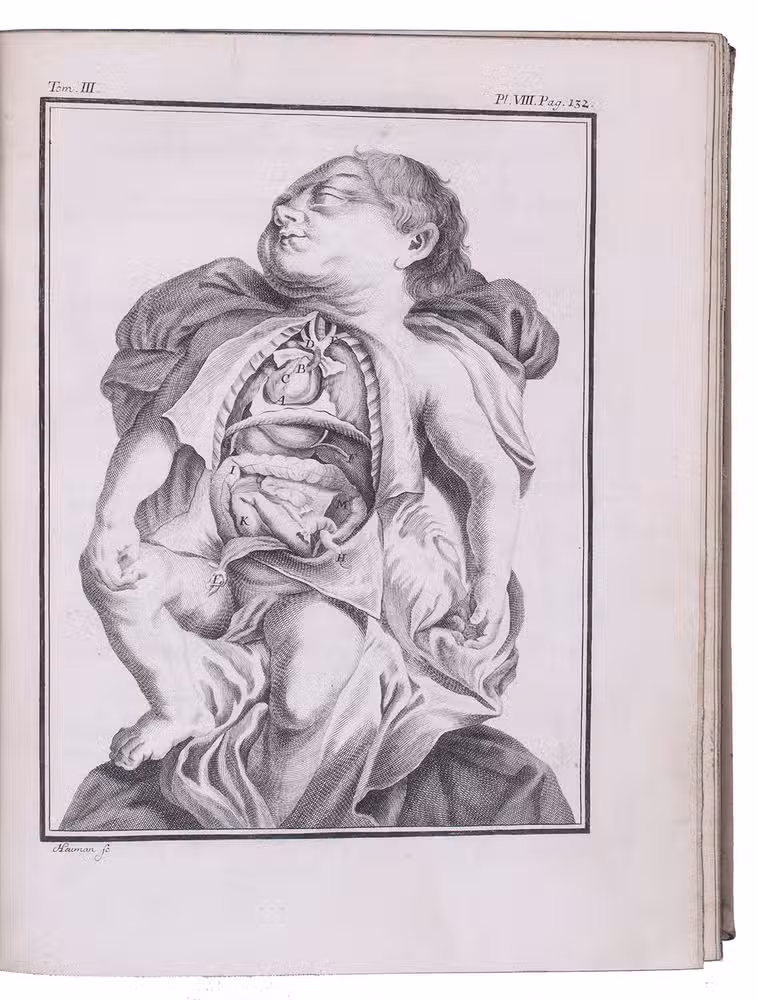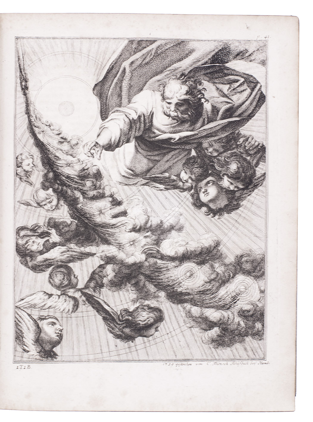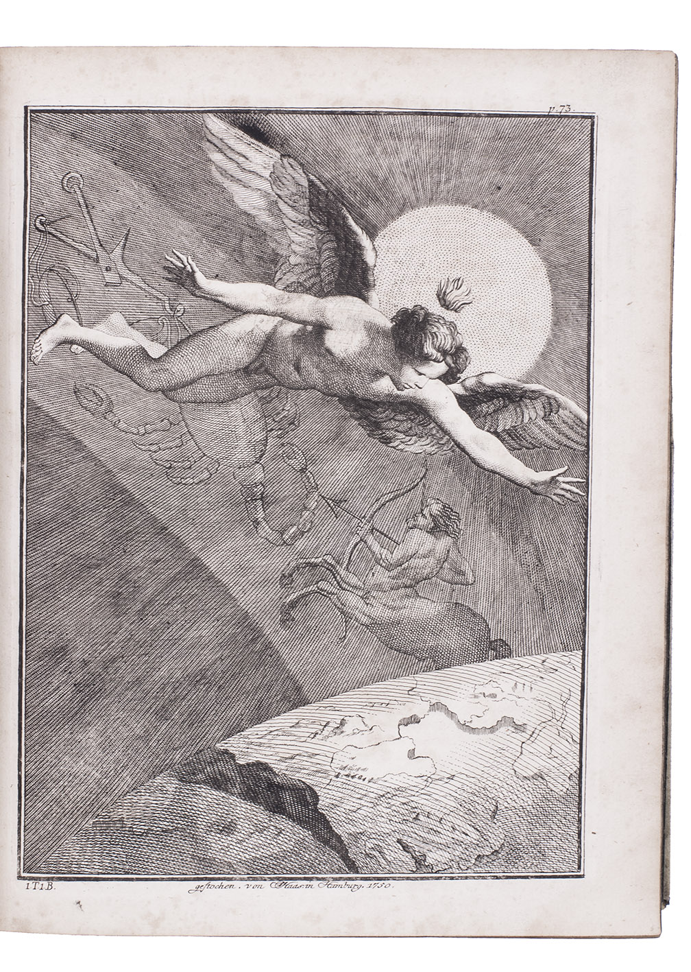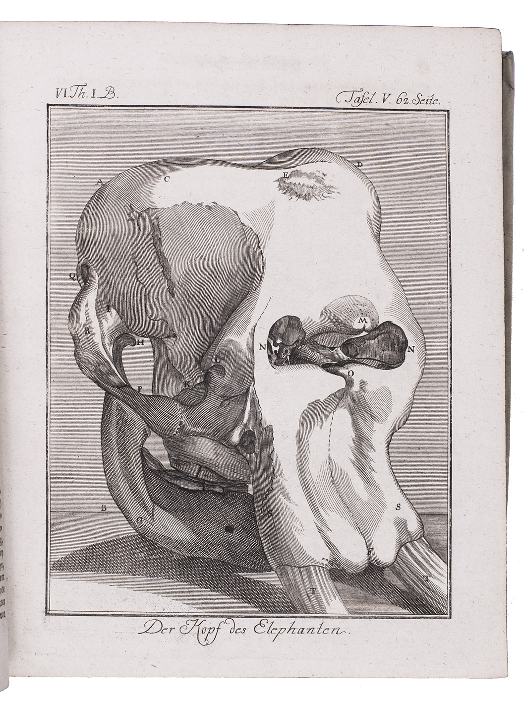 Hamburg and Leipzig, Georg Christian Grund and Adam Heinrich Holle, 1750-1772. 8 (of 11) volumes (divided into two parts each). 4to. With engraved vignette on 16 title-pages, engraved headpiece to the dedication, engraved headpieces to each part, 2 engraved maps, folding engraved genealogical table, 1 folding letterpress table and 575 engraved plates. Contemporary vellum (not strictly matching). Each vol. ca. 650 pp.