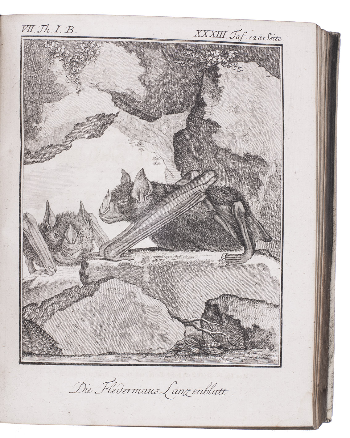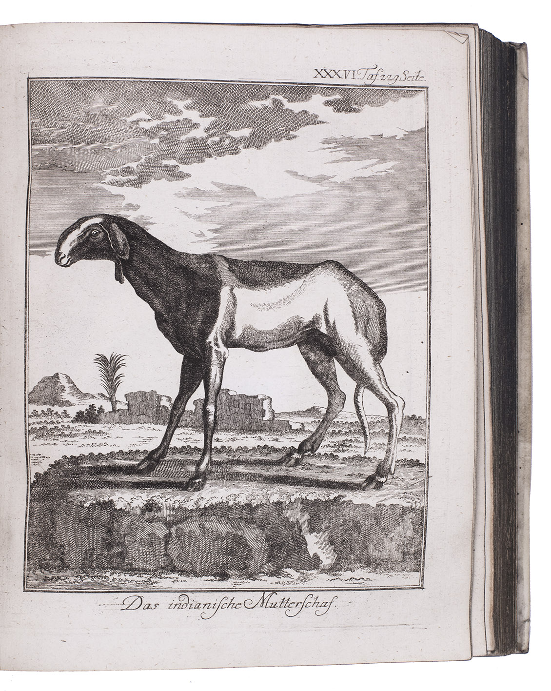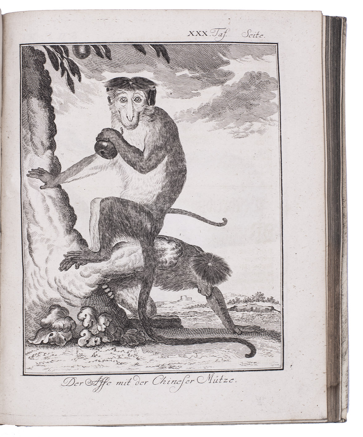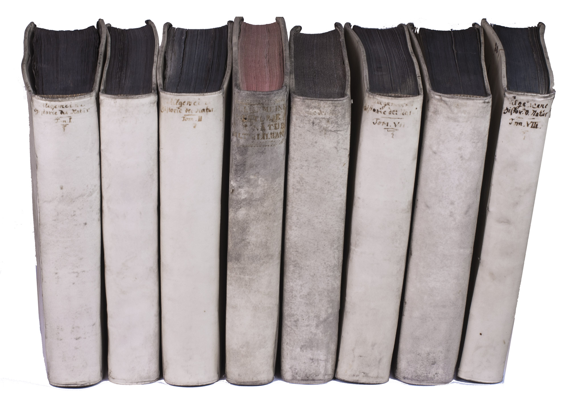 Very rare first edition of the German translation of Buffon's famous Histoire naturelle. Buffon's work presents ''for the first time a complete survey of natural history in popular form'' (PMM). The first volume contains Buffon's theoretical essays, including his essay on the earth where "for the first time he outlines a satisfactory account of the history of our globe and of its development as a fitting home for living things. In his view the earth had been originally part of the sun which was broken off by the impact of a comet. It gradually condensed from its gaseous state, and the forces shaping its continents and mountains are still active'' (PMM). This view of the universe not in a steady state but evolving was a revolutionary idea at the time, paving the way for Darwin in the following century. In his treatise on humans (volume II.1), Buffon ''studied the human species by the same methods that he applied to animal species, including the psychological, moral, and intellectual life of man. From his exhaustive research for the Histoire naturelle des quadrupèdes, Buffon came to the conclusion that it was necessary to reintroduce the notion of family. Breaking with the spirit of his time, Buffon attempted to separate science from metaphysical and religious ideas. As a disciple of Locke he denied idealistic metaphysics, stating that mental abstractions can never become principles of either existence or real knowledge; these can come only as the results of sensation'' (DSB). Volumes II-VIII deal with quadrupeds. The German edition was begun in 1750 but discontinued after the three volumes on ornithology in 1782 (not included here), while the original French, which had started in 1749, continued till 1804 and comprised eventually 44 volumes.