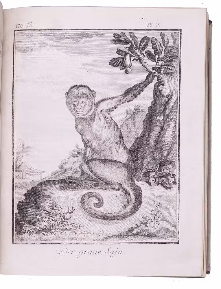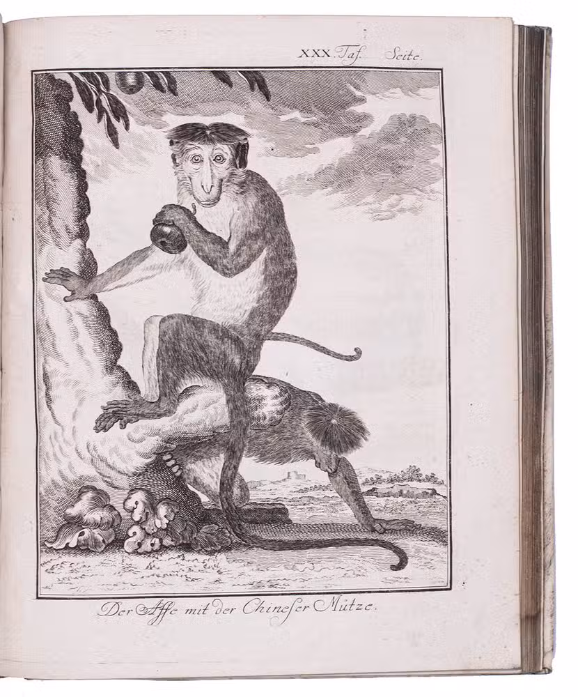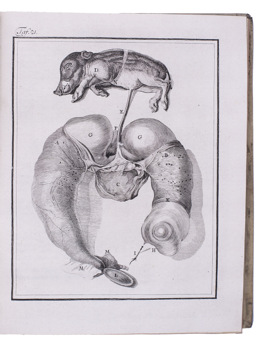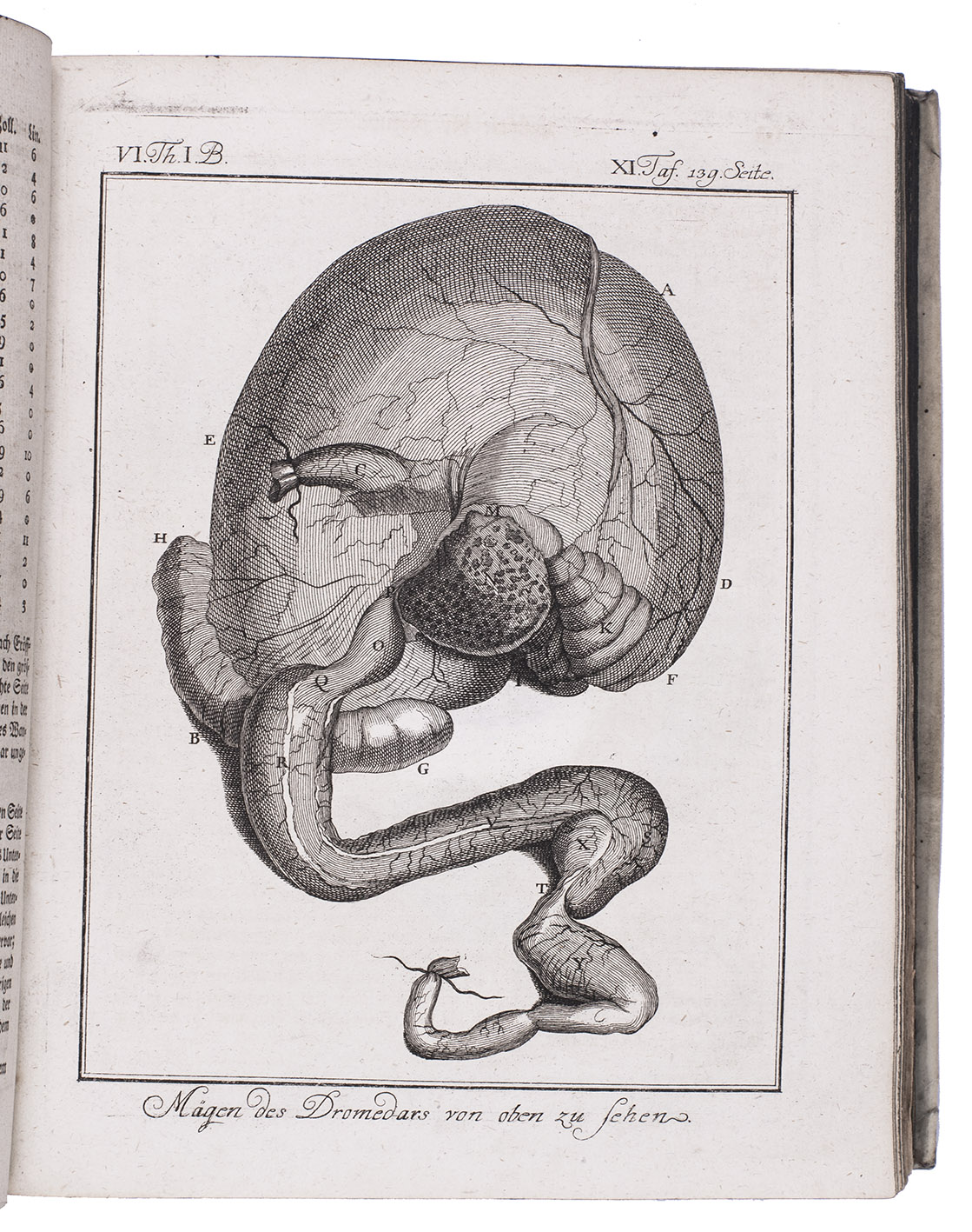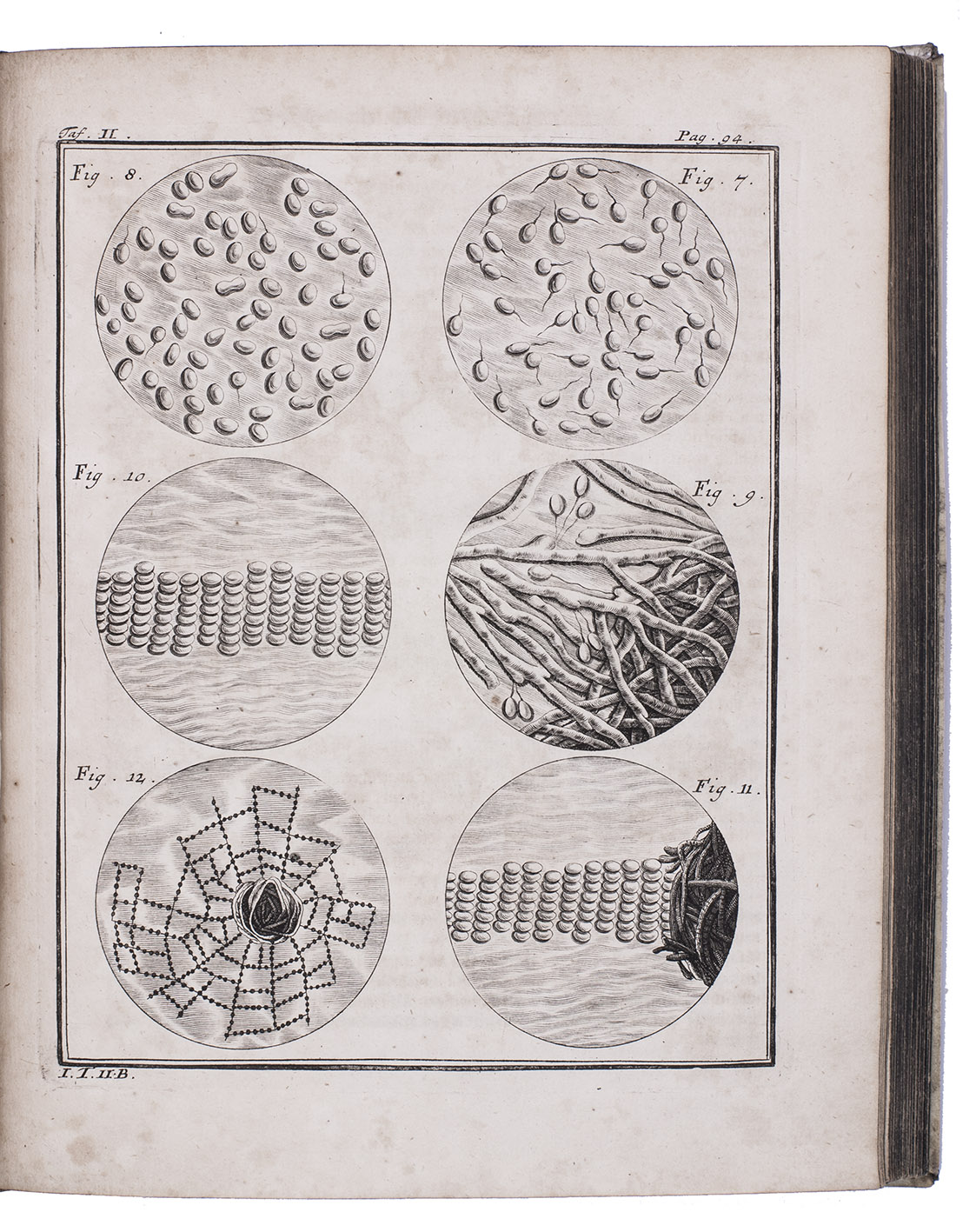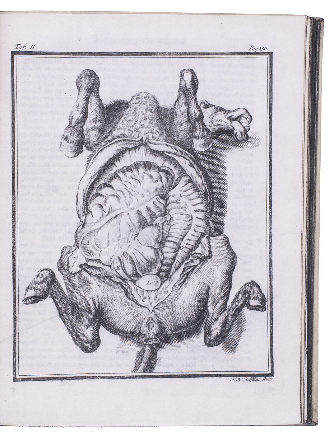 Very rare first edition of the German translation of Buffon's famous Histoire naturelle. Buffon's work presents ''for the first time a complete survey of natural history in popular form'' (PMM). The first volume contains Buffon's theoretical essays, including his essay on the earth where "for the first time he outlines a satisfactory account of the history of our globe and of its development as a fitting home for living things. In his view the earth had been originally part of the sun which was broken off by the impact of a comet. It gradually condensed from its gaseous state, and the forces shaping its continents and mountains are still active'' (PMM). This view of the universe not in a steady state but evolving was a revolutionary idea at the time, paving the way for Darwin in the following century. In his treatise on humans (volume II.1), Buffon ''studied the human species by the same methods that he applied to animal species, including the psychological, moral, and intellectual life of man. From his exhaustive research for the Histoire naturelle des quadrupèdes, Buffon came to the conclusion that it was necessary to reintroduce the notion of family. Breaking with the spirit of his time, Buffon attempted to separate science from metaphysical and religious ideas. As a disciple of Locke he denied idealistic metaphysics, stating that mental abstractions can never become principles of either existence or real knowledge; these can come only as the results of sensation'' (DSB). Volumes II-VIII deal with quadrupeds. The German edition was begun in 1750 but discontinued after the three volumes on ornithology in 1782 (not included here), while the original French, which had started in 1749, continued till 1804 and comprised eventually 44 volumes.