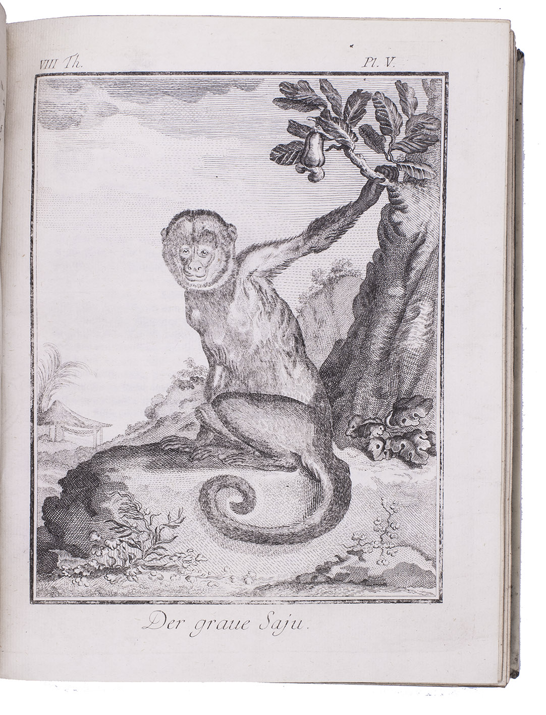 The first 8 volumes of the German Buffon, with an owner's inscription on title-page of the first volume dated 1750. Only some occasional spot, but otherwise in very good condition. Nissen, ZBI 709; cf. Anker 79 (vols. IX-XI); DSB II, pp. 576-582; PMM 198; Wood p. 267.
