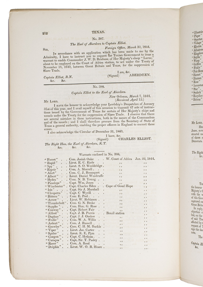 (2) Class C. Correspondence with foreign powers, parties to the conventions between Great Britain and France upon de slave trade. May 1838 - February 1839.