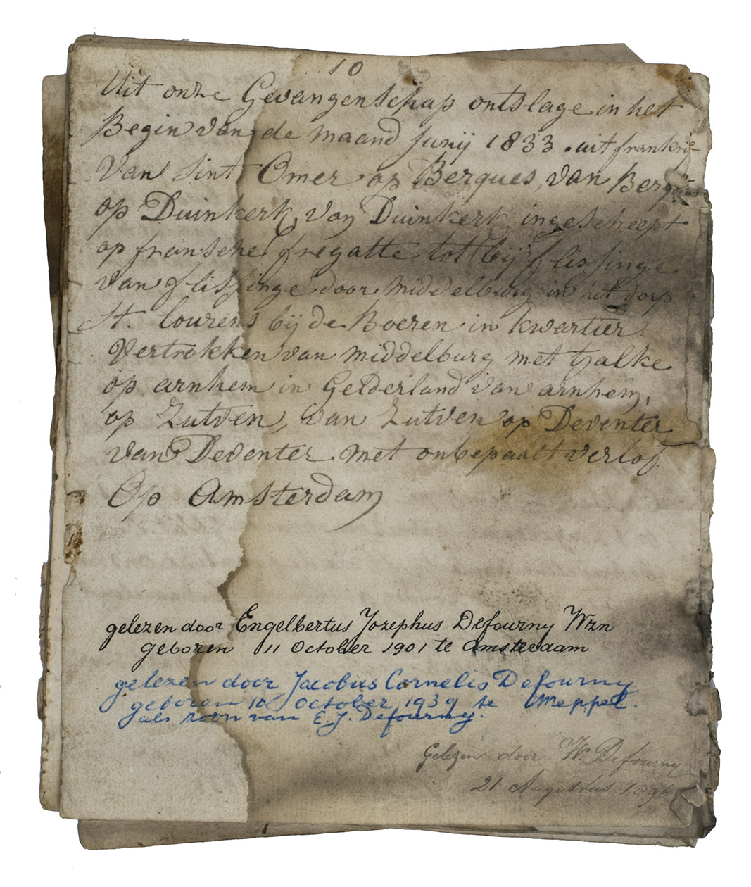 Saint Omer, 24 April 1833. 4to (19.5 x 16.5 cm). Manuscript in Dutch, written in ink on laid paper with no watermark. 10 pp.
