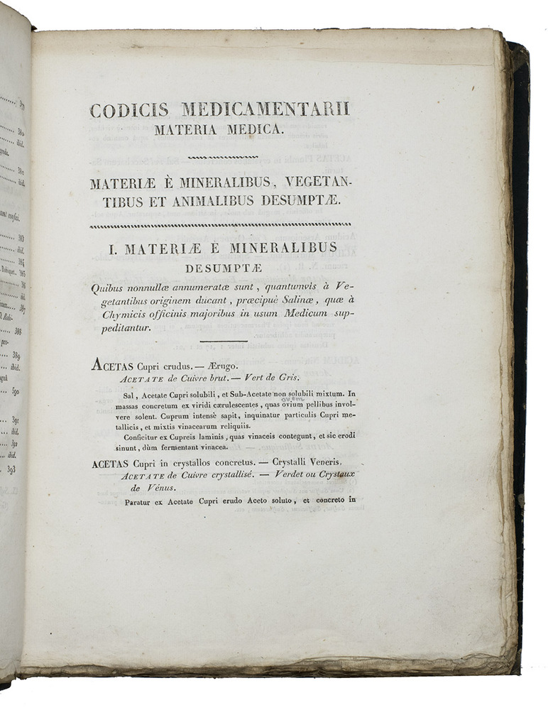 Codex medicamentarius sive pharmacopoea Gallica jussu regis optimi et ex mandato summi rerum internarum regni administri, editus a facultate medica Parisiensi anno 1818.
