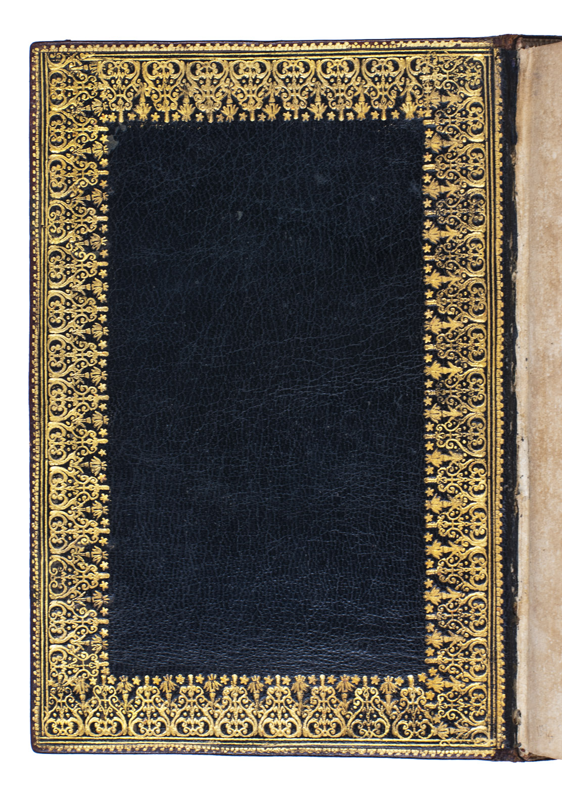 [Paris?, 1732]. 13.5 x 19 cm. Manuscript in brown-black, red and blue ink on vellum, some of the lettering and borders gilt. With a beautiful frontispiece painting in coloured gouaches (14 x 9.5 cm) pasted on the page facing the opening of the text Contemporary gold-tooled red goatskin morocco, gold-tooled blue-black goatskin morocco pastedowns, gilt edges. Frontispiece plus [2], 26 ll., including 2 double and 1 larger folding.