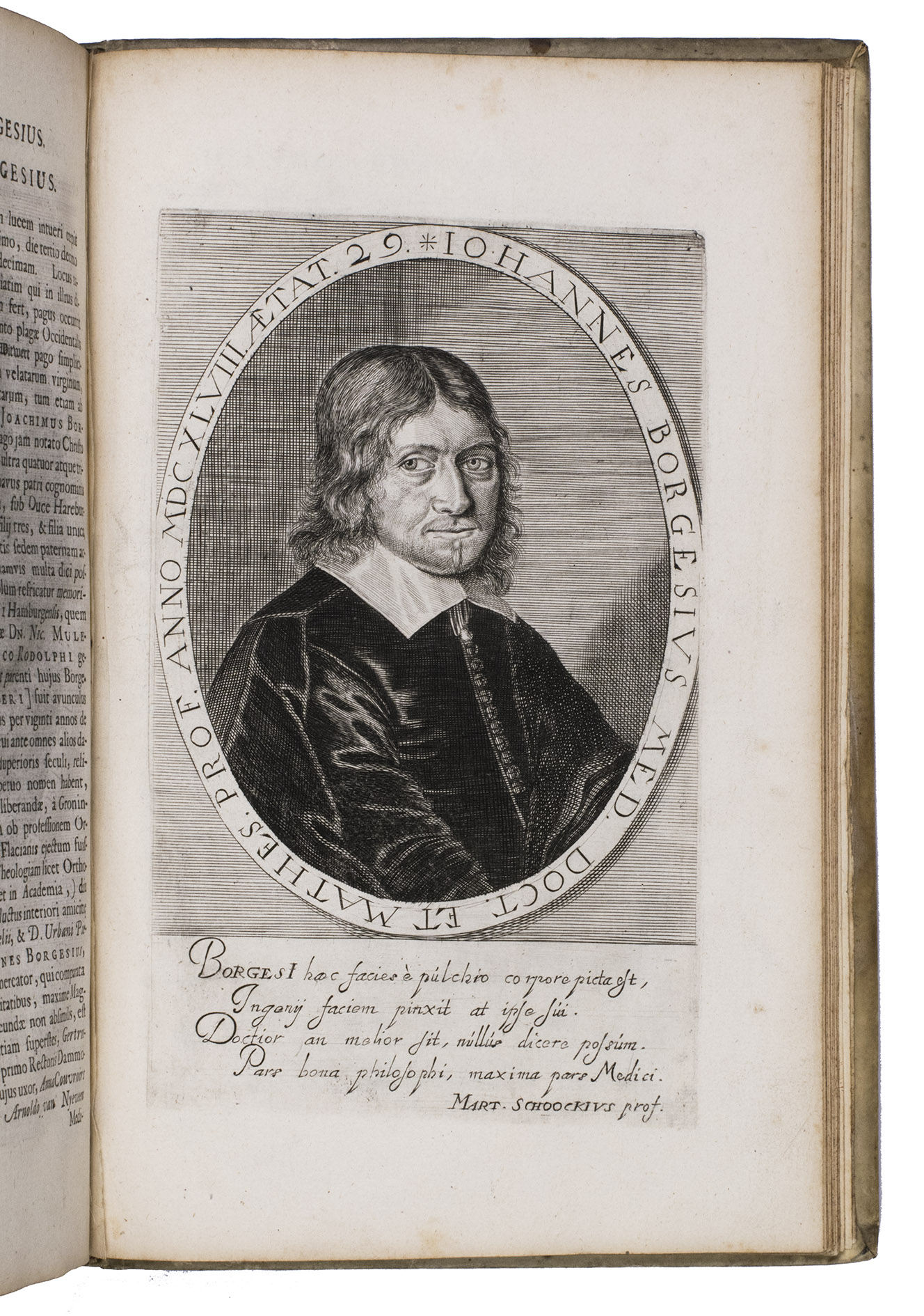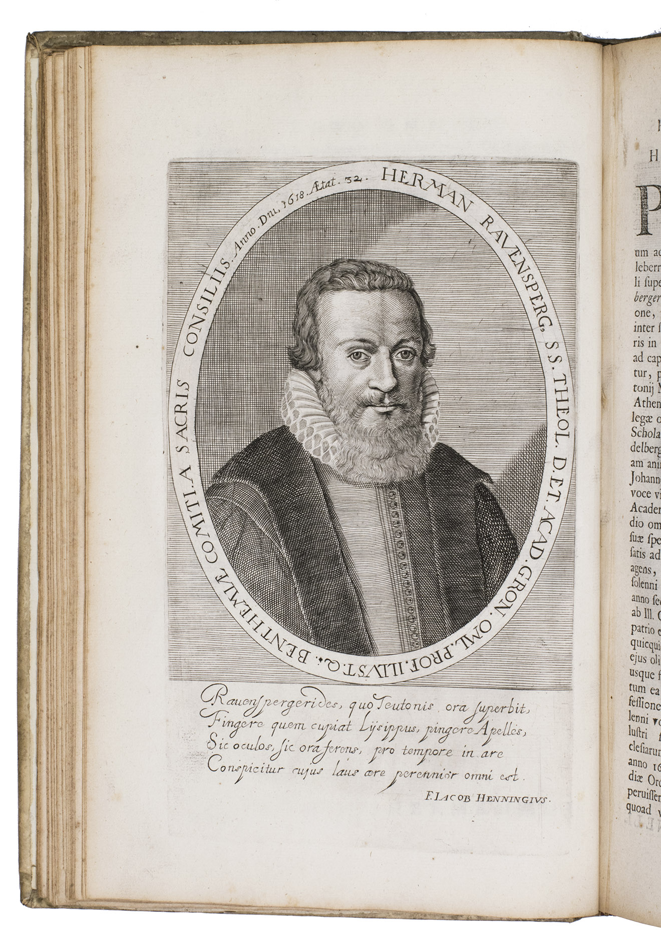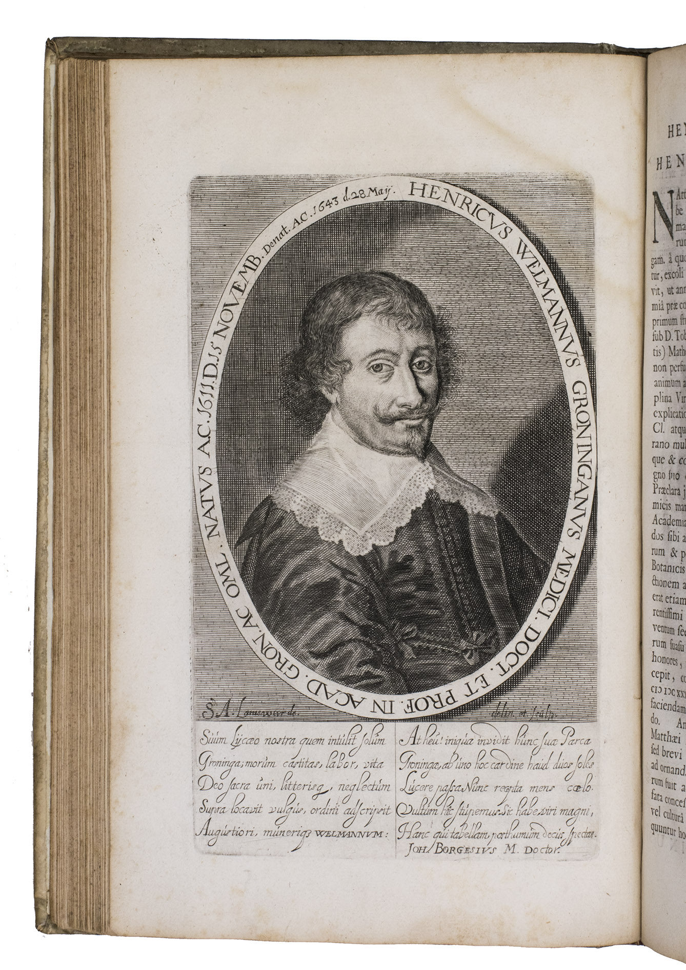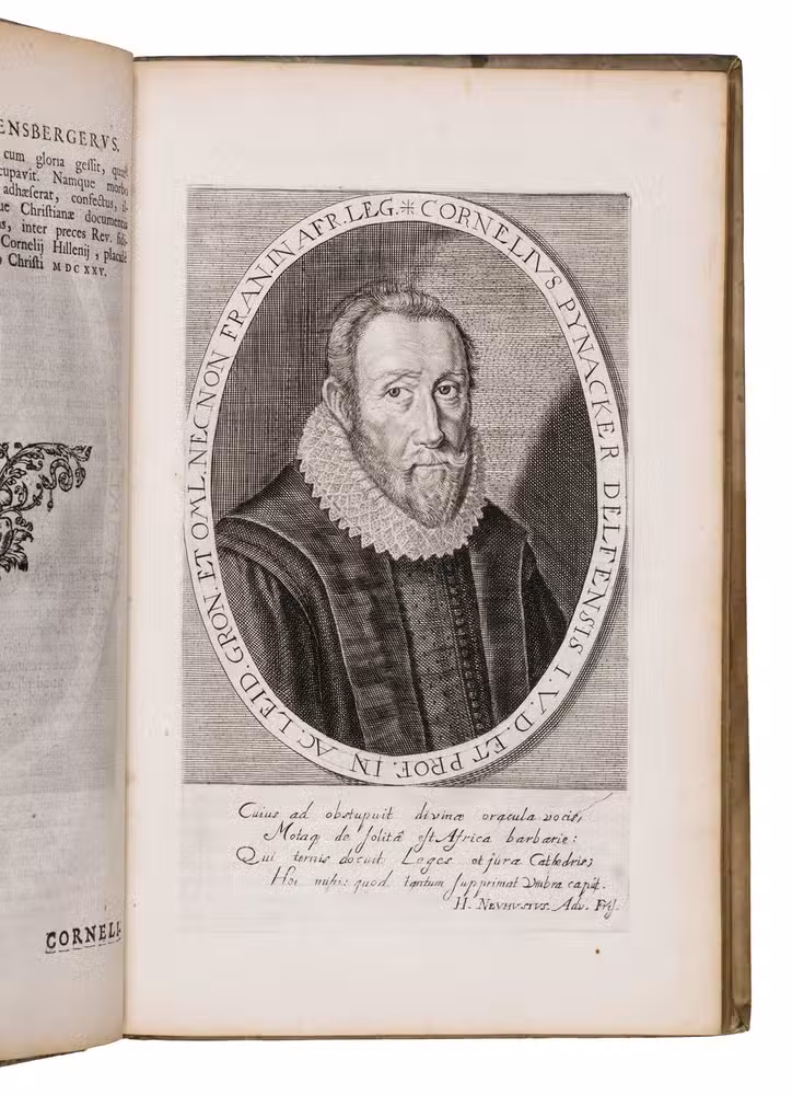 Groningen, Johannes Nicolai (colophon: Hindrick Lussinck), 1654. Small folio (ca. 29 x 19 cm). With an engraved title page, and 31 full-page engraved portraits. Contemporary blind-tooled vellum. [4], 225, [8], [1 blank] pp.