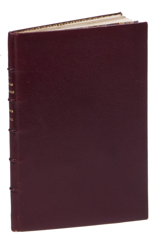 Paris, Estienne Denise, [1557?]. Small 8vo (15 x 10 cm). With 2 woodcut decorated initials and one cast fleuron (Vervliet, Vine leaf ornaments 173). Set in roman type with incidental italic. Finely executed late 19th-century(?) French red morocco by René Aussour, gold-tooled turn-ins, title, place of publication and date 1555 in gold in 2nd and 3rd of 6 spine compartments, gilt edges. [51], [1 blank] pp.