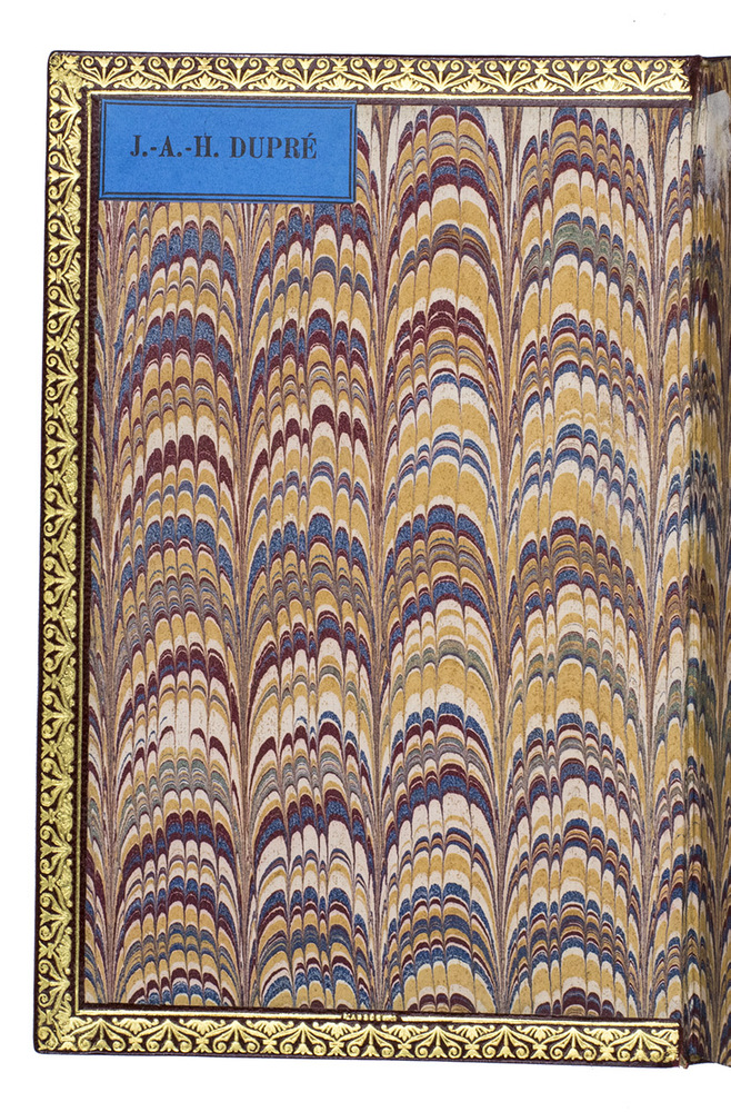 The small owner's label of J.-A.-H. Dupré, printed letterpress on blue paper, is 19th-century in style, as are the binding and endpapers, but René Aussour appears to have been active to 1931 so the binding and label cannot be earlier than late nineteenth-century. With an early manuscript date "1555" on the title-page. Trimmed close to the text but with no loss and in good condition, with minor water stains. Polak 4478 & 10297; USTC 29853 (3 copies); cf. Graesse III, p. 288 (Regnault issue); for the authorship: Thieury, ed., Combat naval-1555 (1861); not in JCB.
