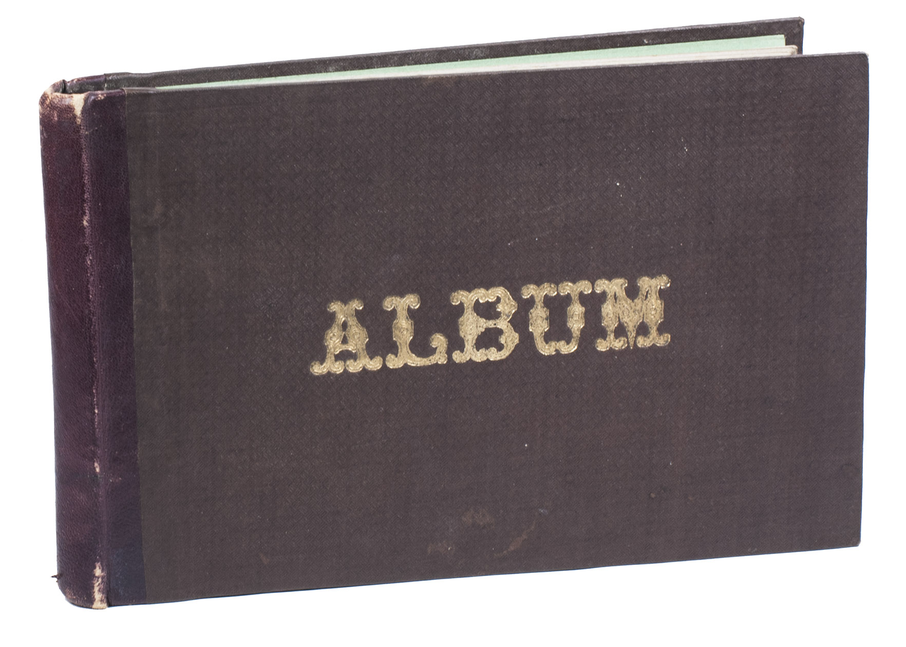 [Paris?, in or soon after 1872]. Oblong (17.5 x 28 cm). With 101 very neat drawings in ink, some hand-coloured (blue and yellow). Half purple morocco and purpleish-brown weave-grained cloth sides, with "album" lettered in gold on the front board. 52 ll.
