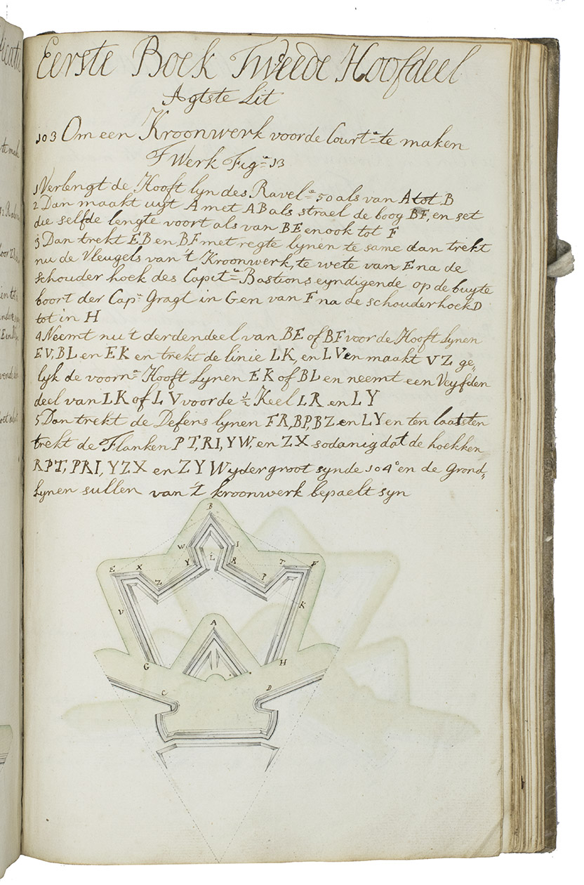 The text on fortification refers to various earlier authors. Although it refers to most only by their last names and mentions only one specific title, they can be identified with reasonable certainty as Blaise François Comte de Pagan, Adrianus Metius, Gerard Melder, Allain Manesson Mallet (it explicitly mentions Den arbeid van Mars), Sébastien Le Prestre Marquis de Vauban and Bartholomeus Bruist, but no later authors. The latest certain work is therefore Bruist (1705) though "Pagan" probably refers to the Dutch translation (1738).