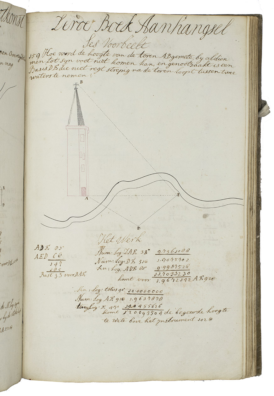 Detailed and beautifully illustrated manuscript in ink divided into 3 sections on practical geometry and mensuration, fortification and artillery, illustrated with numerous original pen drawings and watercolour drawings, including 9 finely made full-page illustrations of canons.