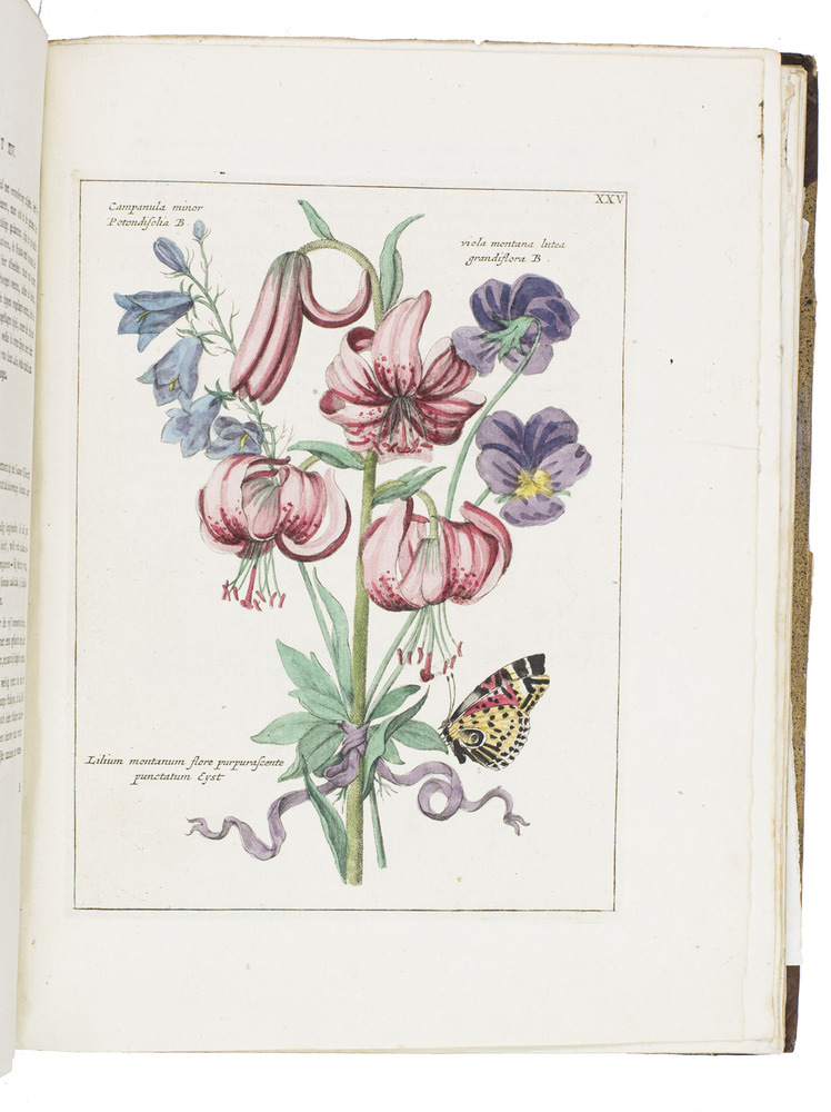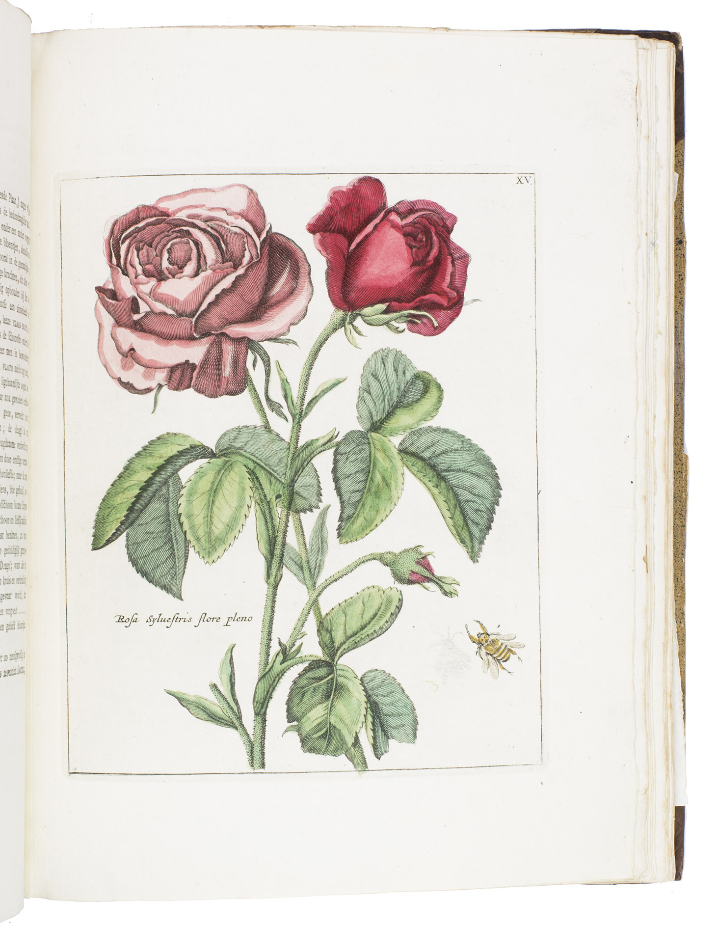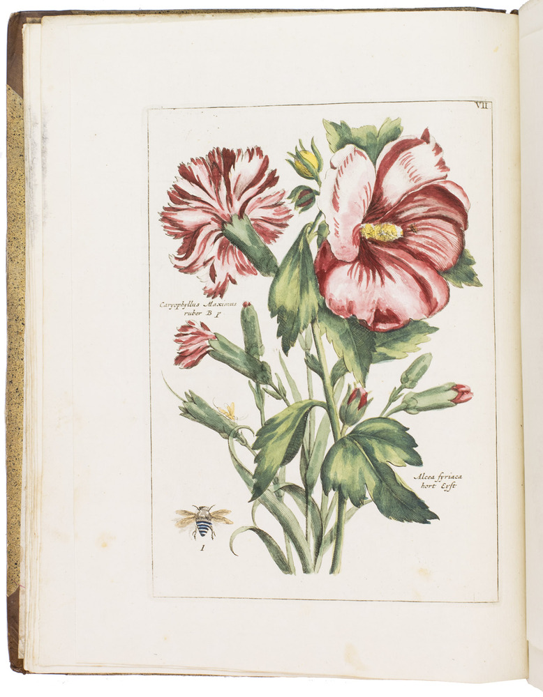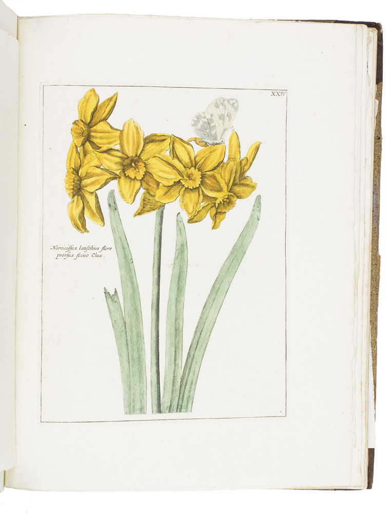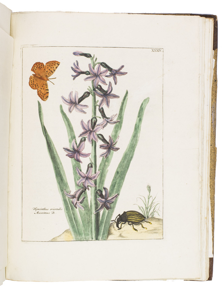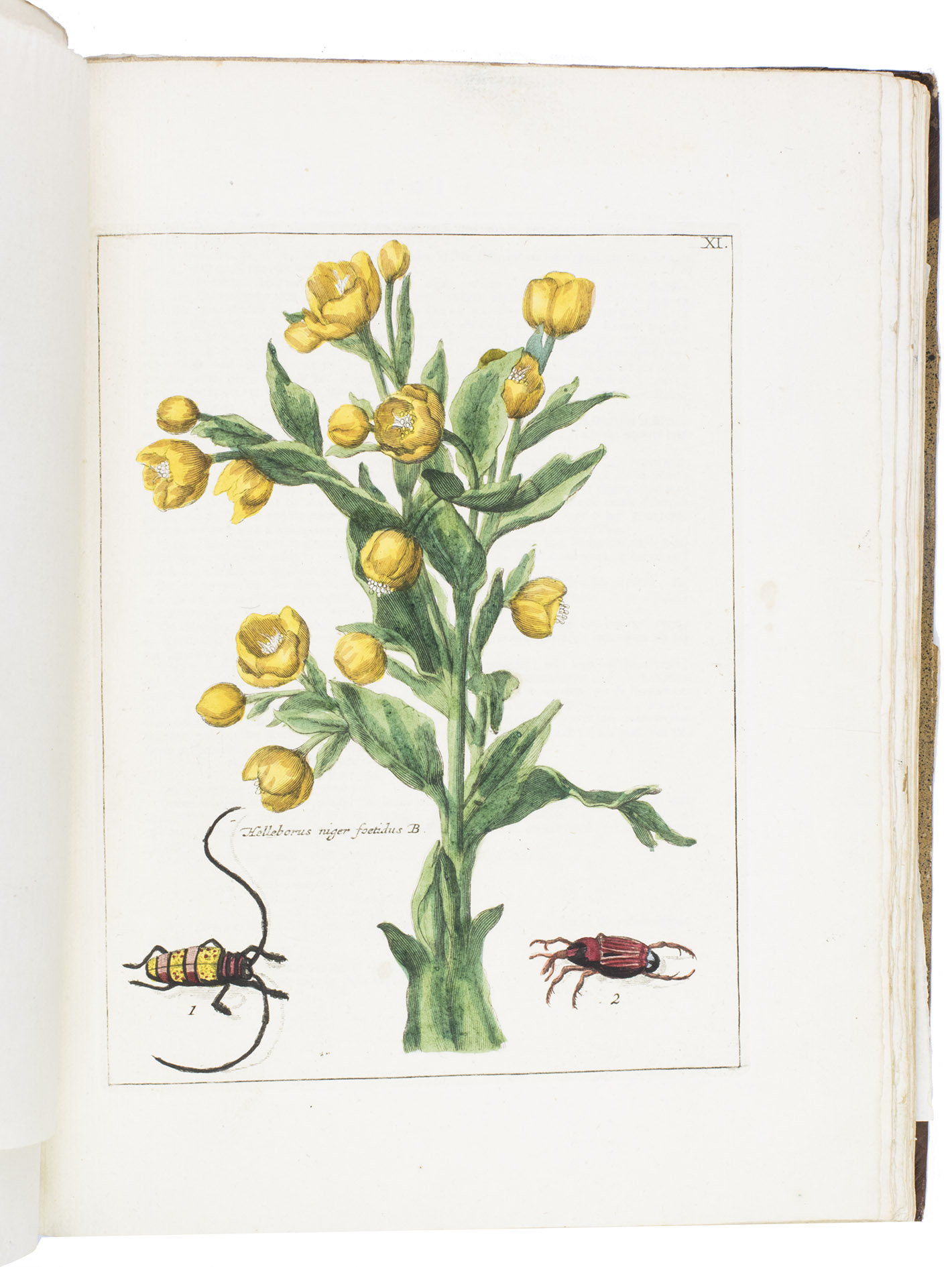 With an official parchment document from 1773 ("Opdragtbrief ten behoeuen van Van Johannes Langelaen, indato den 20e December 1773") and a Dutch fine from 1963 inserted in the front of the work. The edges and corners of the boards are scuffed and the paper on the sides is somewhat rubbed. Plate 48 and 49 are bound in the wrong order. Otherwise in very good condition. Dunthorne 215; Hunt 733; Landwehr, Coloured plates, 29; Lindley, p. 323; Nissen, BBI, 2219; STCN 260360899 (9 copies); Sitwell, GFB, p. 70.