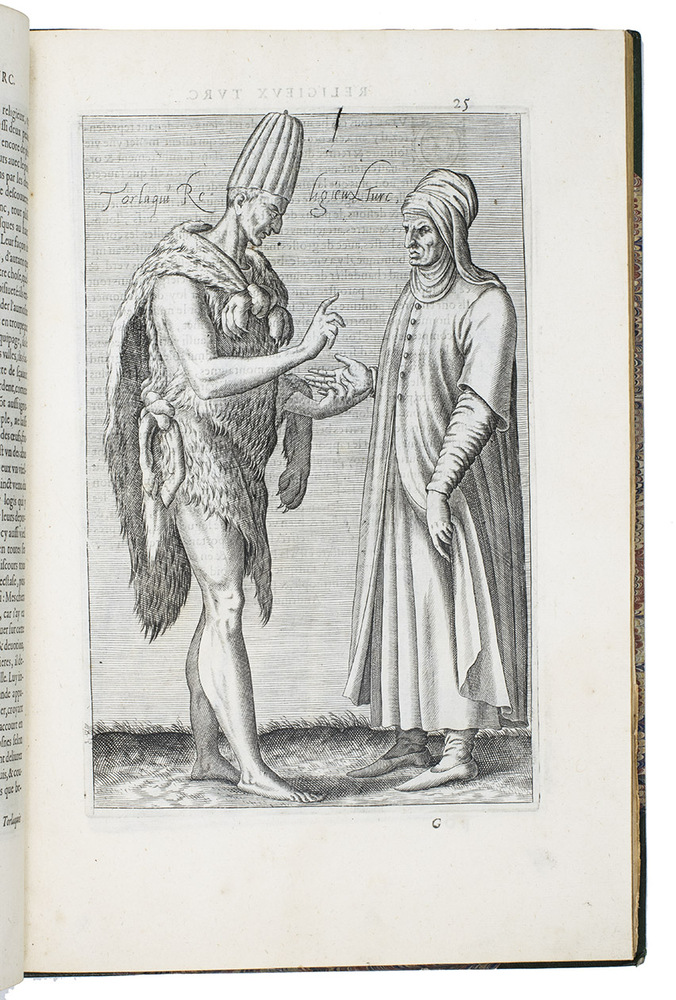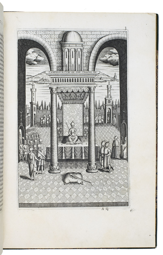 Binding very slightly rubbed and on leaf somewhat loose. Very good copy. Cf. Atabey 214 (Chalcocondyle 1662), 871 and 872 (Nicolay 1576, 1586); Goldsmith, BMC STC French C-594 (Chalcocondyle 1620); Hamilton, Europe and the Arab world 9 (Nicolay 1576) and 23 (Chalcocondyle 1662); Hiler, pp. 656-657 (several Nicolay editions).