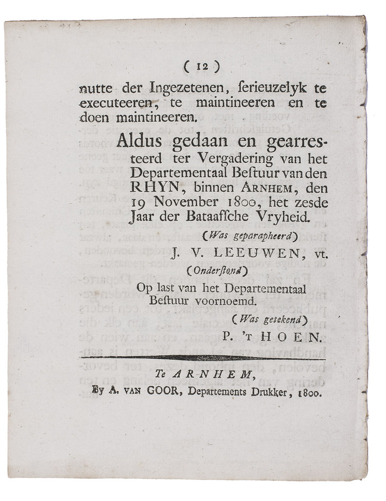 Arnhem, Abraham van Goor, 1800. 4to. Disbound. 12 pp.