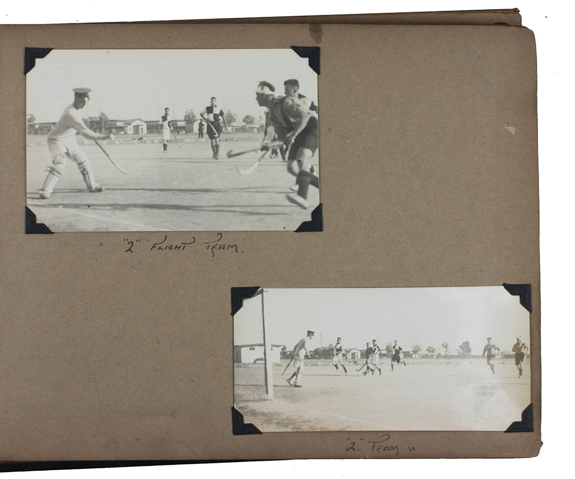[Iraq (plus Malta and Egypt), ca. 1928-1933]. Oblong albums (25 x 34.5 cm & 21.5 x 28.5 cm). Two albums containing about 275 silver halide photographic gelatin prints (6 x 8.5 cm to 16 x 21.5 cm) assembled and mostly taken by a British Royal Air Force pilot while stationed in Iraq and then briefly Malta, with a visit to Egypt. The photos mounted with paper corner-mounts in two contemporary cloth-covered albums, the larger with padded boards covered in alligator-skin patterned dark green cloth, with the photographs on both sides of 24 dark grey album leaves, each leaf with a glassine paper guard-leaf (embossed with a spider-web pattern) bound in before it; the smaller covered in black cloth with a grey-white bird in a cloud painted on the front board and the word "snaps", with the photographs on both sides of leaves 2-35 & 51-52 of 54 light brown album leaves.