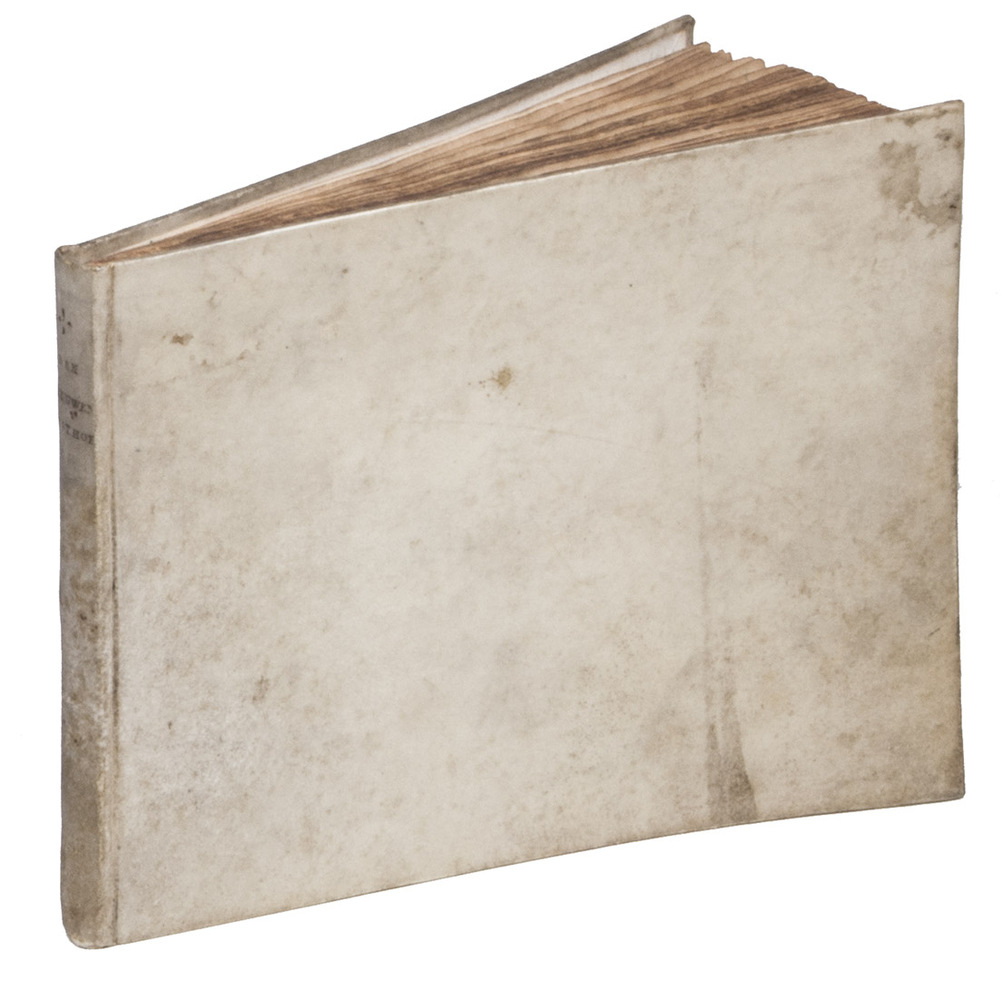 Amsterdam, Dirck Pietersz Pers, [ca. 1610]. 2 parts in 1 volume. Oblong 8vo. Each title-page with the same large engraving of a company making music after David Vinckboons. Later vellum, manuscript title on spine. [8], 96; 24 pp.