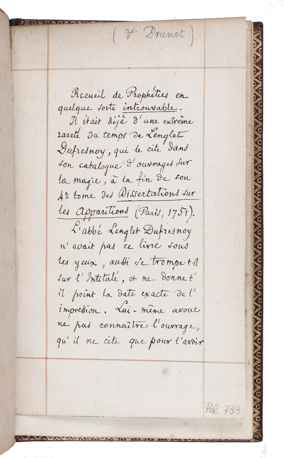 From the library of Stanislas de Guaita (1861-1897), a Paris poet and novelist from an Italian noble family, with his gold-blocked armorial bookplate on red leather on the front paste-down. He was a Rosicrucian and made use of occultism and magic in his literary work. Although the binding is unsigned, the 1899 catalogue of Guaita's library attributes it to Derome, and the book has a printed description of what must be the same copy from Morgand's 1894 catalogue of the Hyppolyte Destailleur (1822-1893) collection. The 1894 catalogue notes that it came from "Beckford", presumably William Beckford (1760-1844), whose collection was sold in 1882.