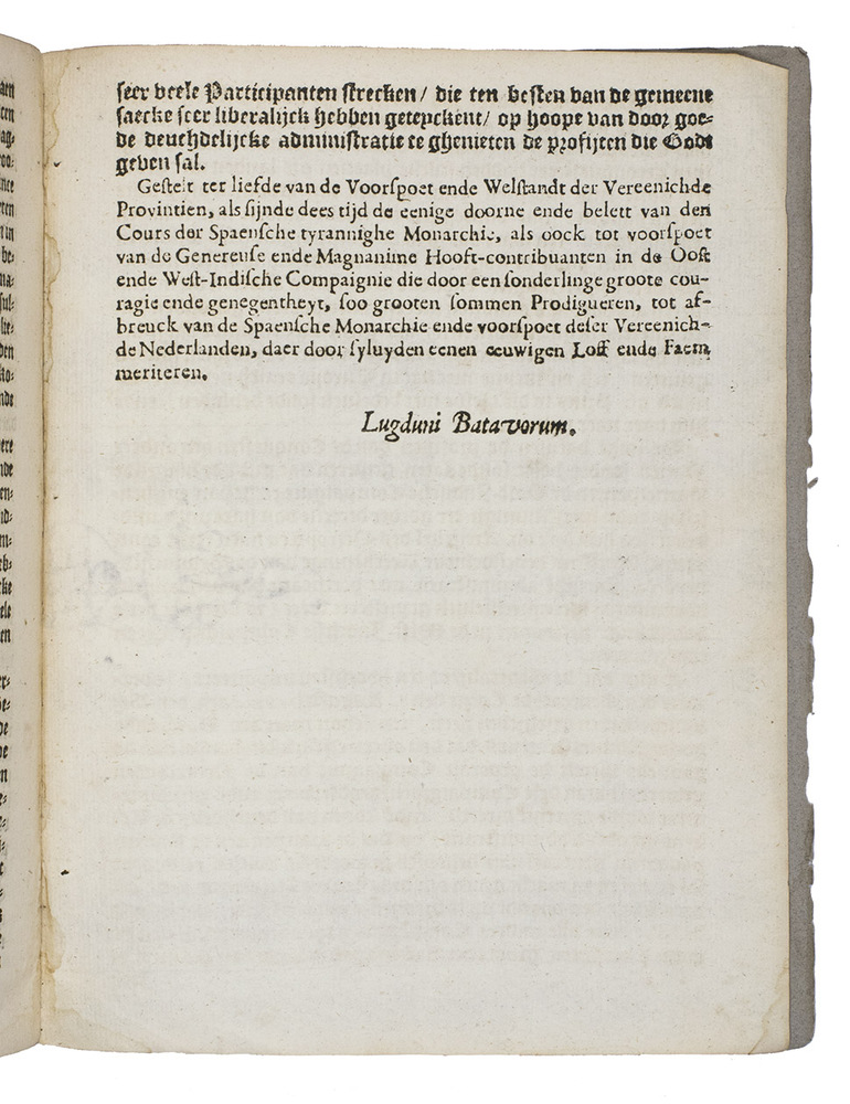In the end, the protest of the shareholders uttered in this and similar pamphlets was successful. the directors' powers were somewhat curtailed when the patent for the VOC was renewed in 1623. Their tenure as directors was limited to three years and it was explicitly stated that directors were only allowed to trade goods from India, Batavia and Bangladesh at public auctions under the same conditions as all others.