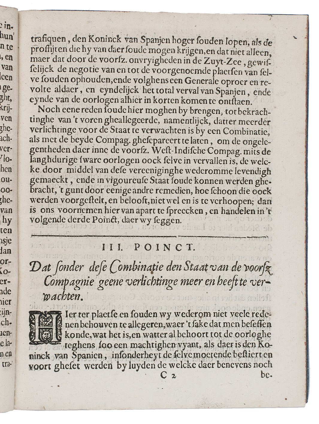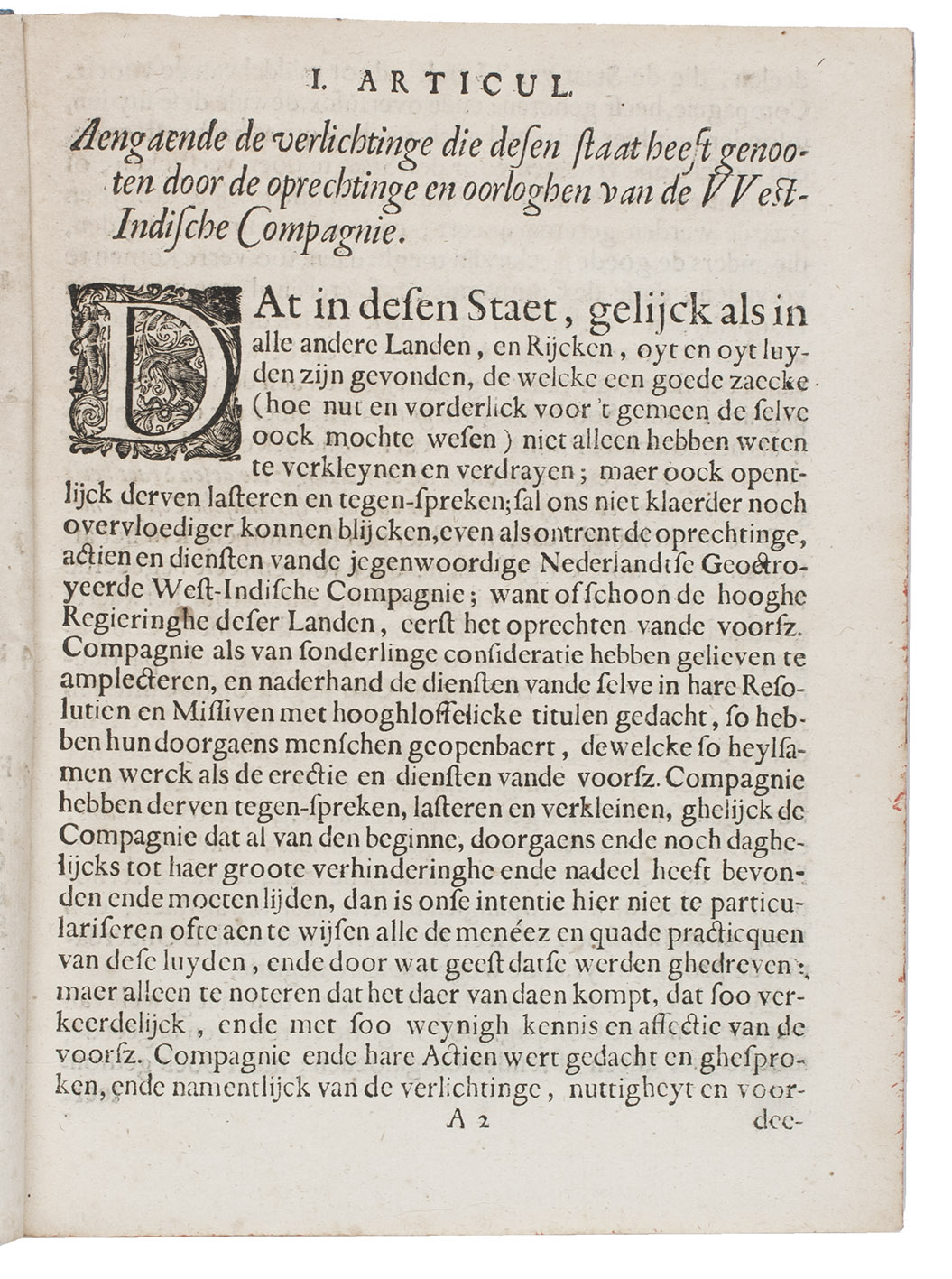 Rare first and only edition of a "short discourse", discussing in five points the financial profits the Netherlands made from the West India Company and the further benefits that will come from a merger of that company with the East India Company. These points all relate to America, and the commerce of the Dutch in the West Indies.