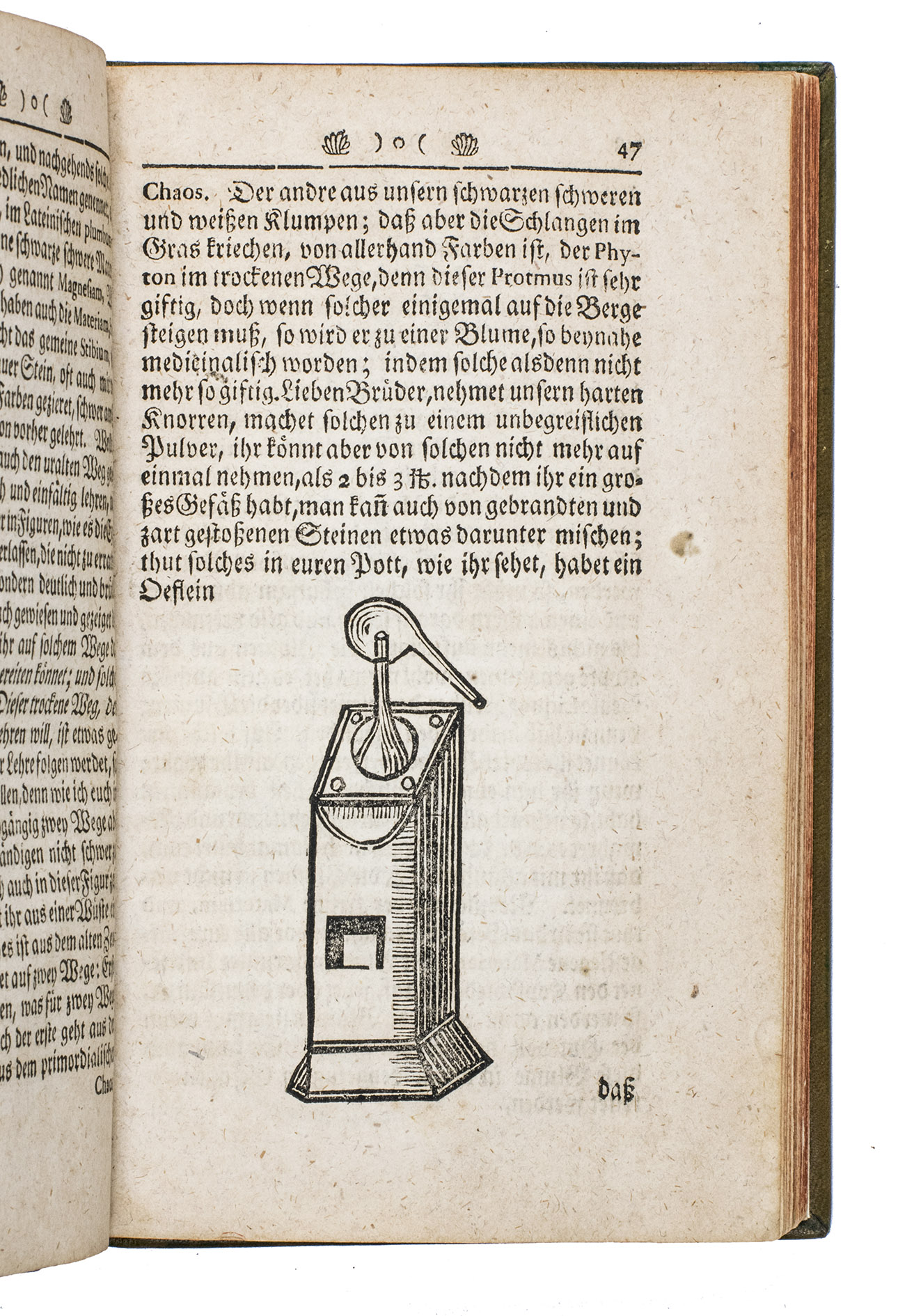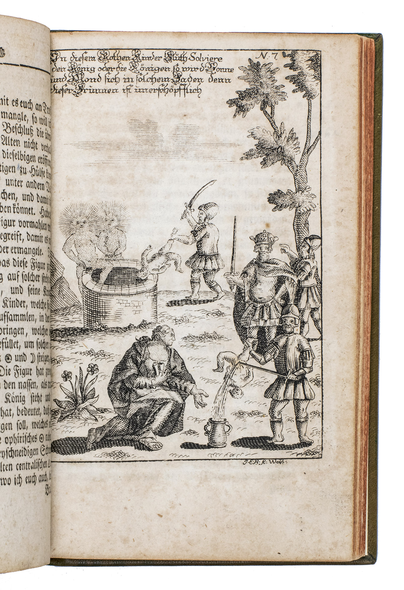 Second, enlarged edition of a scarce alchemical work, supposedly copied from the manuscript from which Nicolas Flamel (1340-1418) gained his skill. The beautifully illustrated work discusses the basics of alchemy and the creation of the philosopher's stone. It also contains 156 rules and canons relating to the philosopher's stone, which are exclusive to the second edition. The work rarely appears on the market, as we have only been able to find four other copies in sales records of the past hundred years, the last complete copy being offered in 1998.