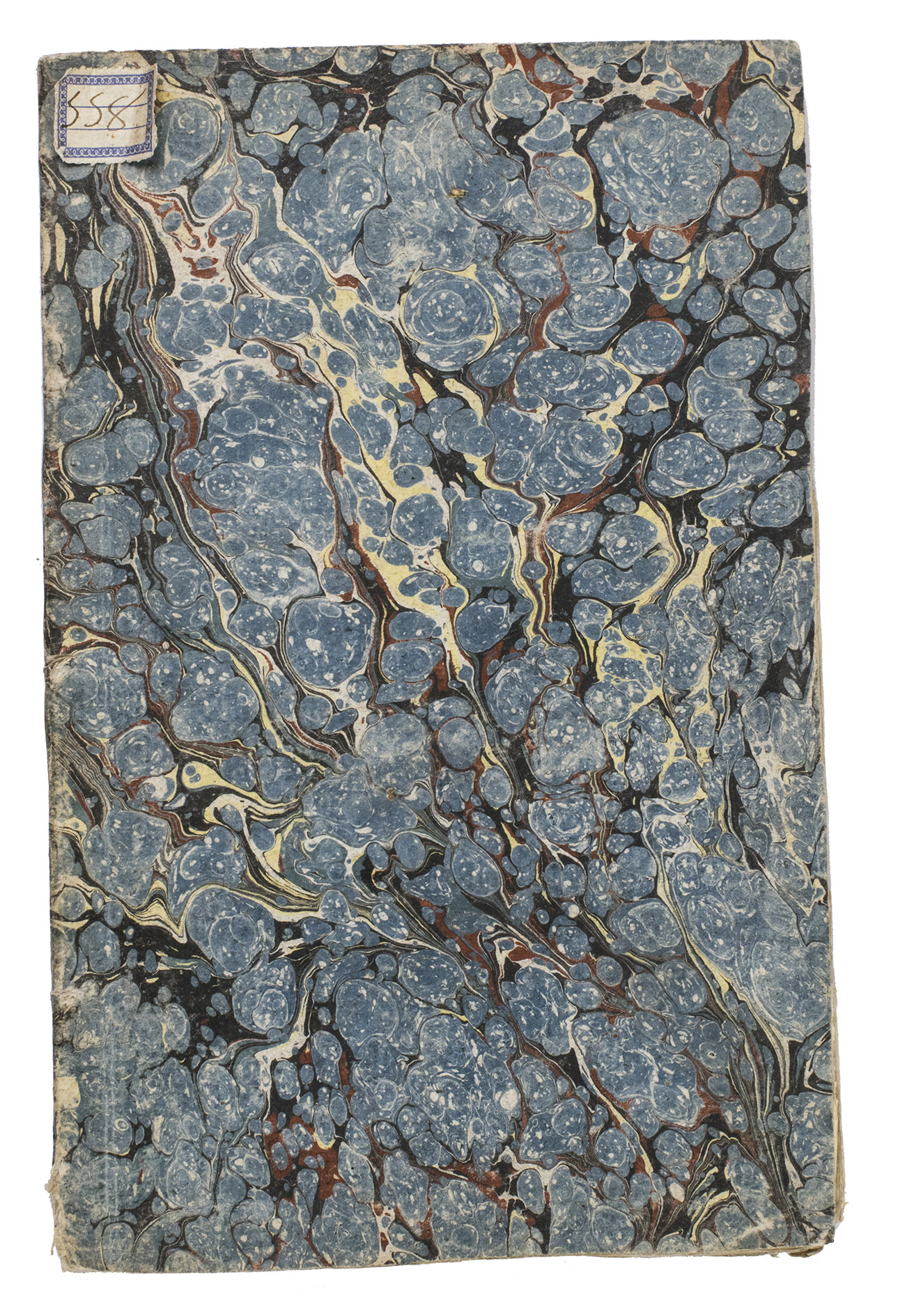 With a paper label mounted at the head of the front wrapper and an annotation at the foot of page 17. The edges and corners of the wrapper show some signs of wear, with some loss of material at the foot of the spine. With a tear in the lower margin of page 43, without affecting the text. Overall in good condition. VD18 1437708X.
