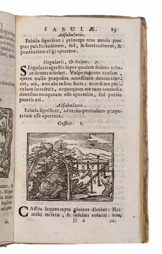 Aesopi Phrygis, et aliorum fabulae, quorum nomina sequens pagella indicabit, elegantissimis iconibus in gratiam juventutis illustratae, Pluribusque auctae, & diligentius, quam antehac emandatae. Cum indice locupletisimo.