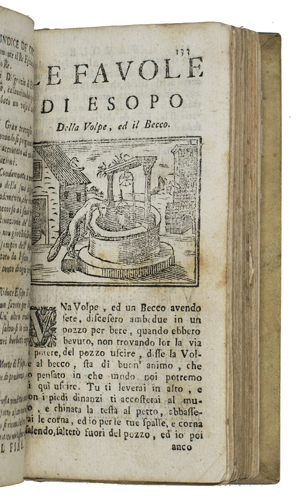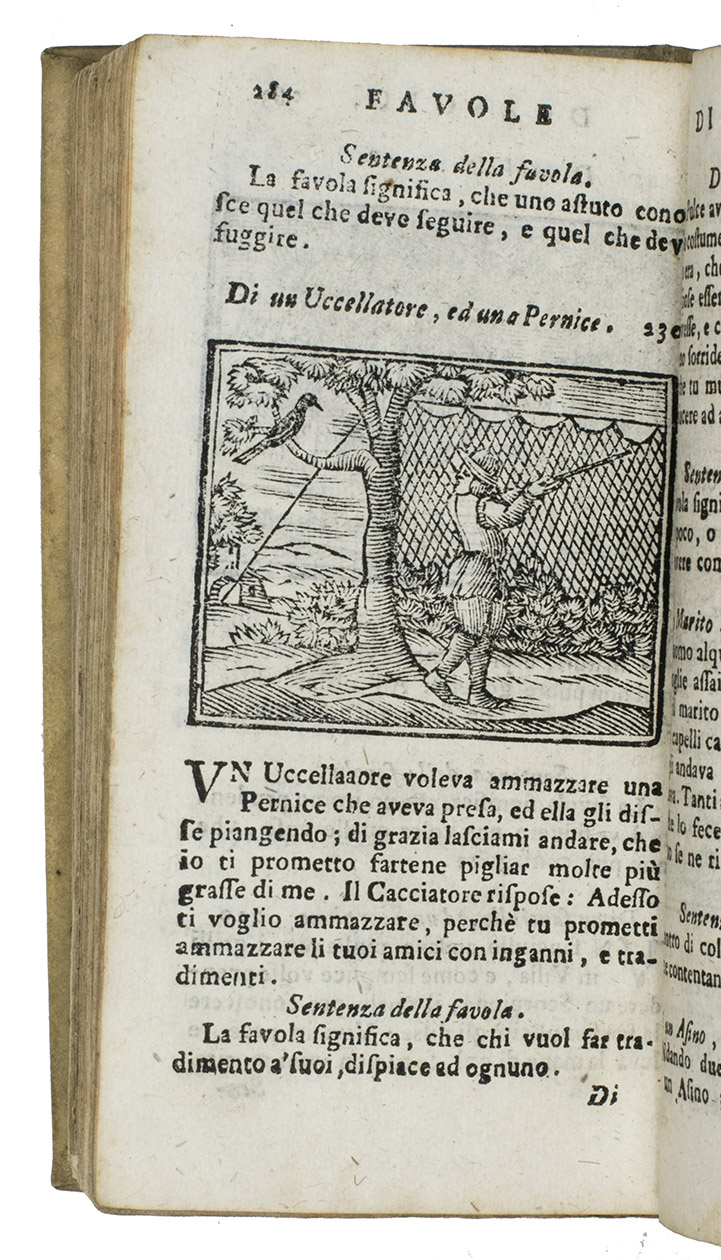 Florence, Giovanni Gaetano Tartini, 1718. 12mo. With 90 (incl. repeats) woodcuts (ca. 4.5 x 6 cm). Plain vellum. 384, [12] pp.
