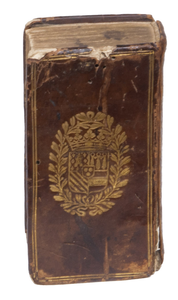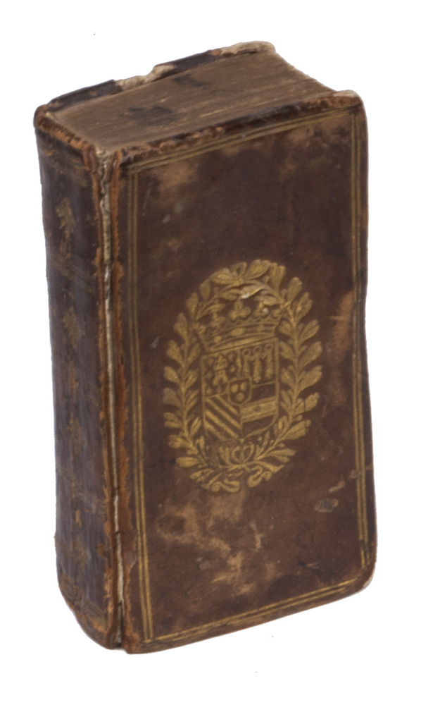 Paris, Jean Libert, 1623. 16mo. Contemporary French gold-tooled calf, each board with the coat-of-arms of Henri de La Tour (1555-1623), Duc de Bouillon and Prince of Sedan, who married the daughter of William the Silent, founding father of the Dutch Republic (with a French Ducal crown, the whole in a wreath of 2 laurel branches with berries). [2], 236, [1] pp.