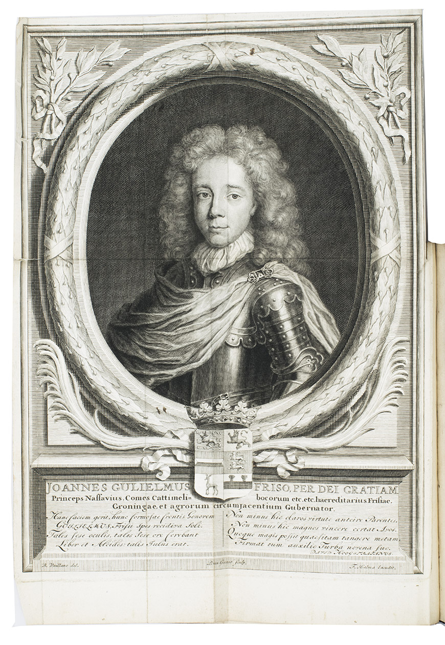 With the bookplate of John Blackburne on the front paste-down. Spine damaged, front hinge weak, paper sides worn and partly torn off, some small marginal tears in the portrait of Johan Willem Friso, but otherwise in good condition. Bodemann, 94.1; Fabula docet 42; Landwehr, F163; Schwabe/Barbier, pp. 69-70.