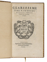 The device on the title page, of two griffins with their tails intertwined and holding a tablet with the motto: "quod tibi non vis", was the device of Sebastian Gryphius, with whom De Tournes had learned his art and for whom Jean de Tournes had published several titles since 1540. The device was probably used because it was well known in Lyons. De Tournes's full motto reads: "Quod tibi non vis, alteri ne feceris". However, in the course of the sixteenth century the family De Tournes became even better known as Gryphius; the De Tournes remained in business at Lyons until the end of the 18th century. The printer's device to the colophon showed a medallion with a tetrahedron in centre, and the motto round the border: "nescit labi virtus". The woodcuts beautifully illustrate the Latin emblems, printed in four to ten lines underneath the illustrations in the first book, a few single emblems running over to the next page.