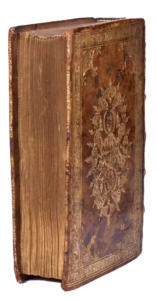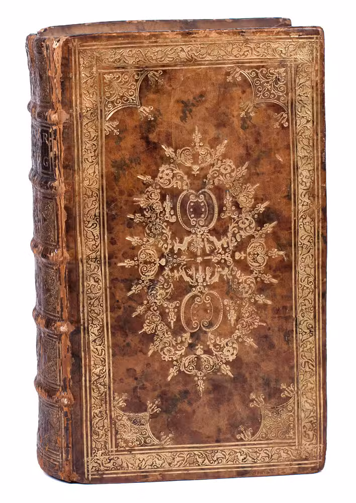 The present copy has been beautifully bound by the Crescent Moon Bindery, which was located in either Rotterdam or Den Briel. Their work is quite rare, as Jan Storm van Leeuwen has only been able to identify four bindings made by them, including the present. All four were likely presentation copies.
